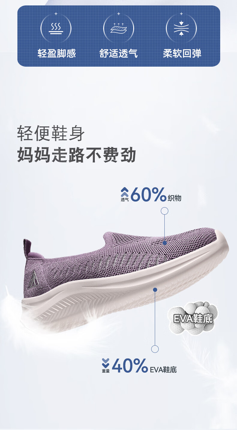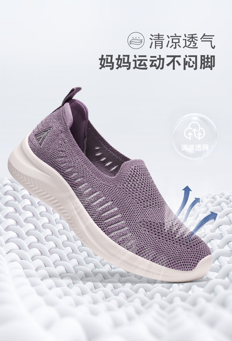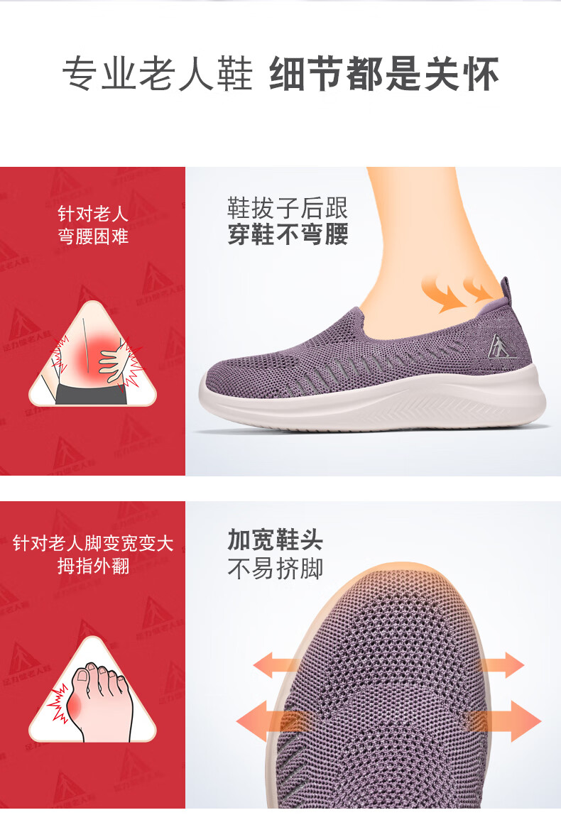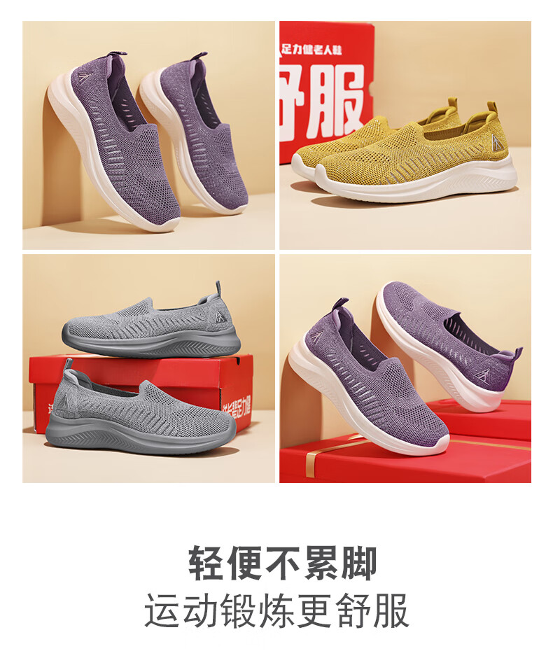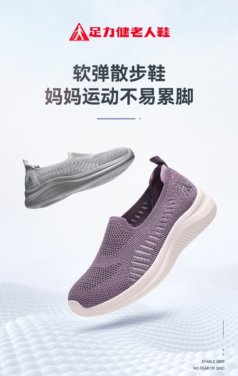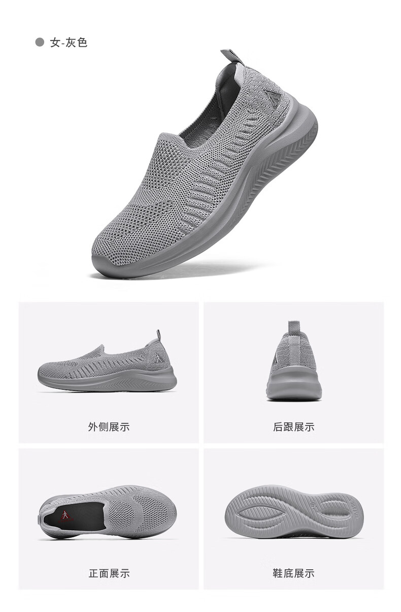 足力健老人鞋新款夏季网面女士休闲鞋便捷一脚蹬妈妈鞋休闲鞋 灰色 35