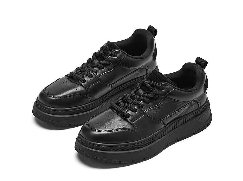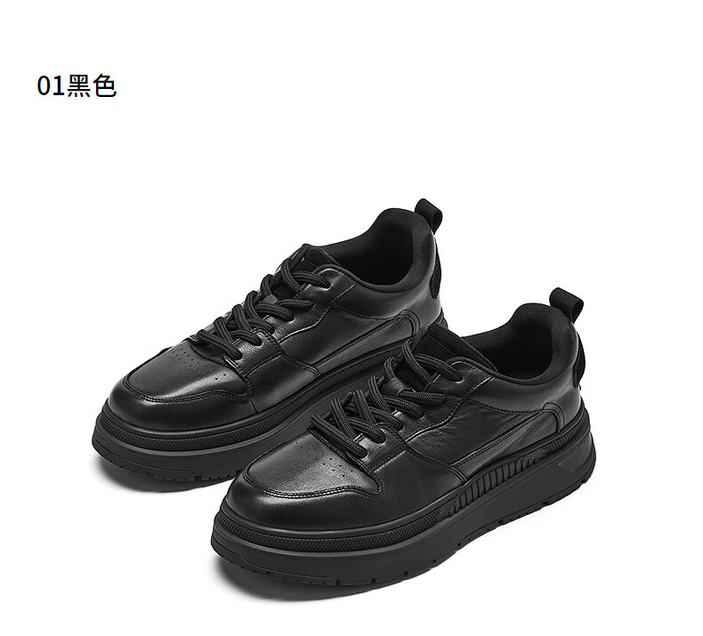 热风男鞋2025年冬季新款男士黑色休闲鞋子通勤百搭板鞋运动跑步鞋 01黑色 (牛头层皮革) 38