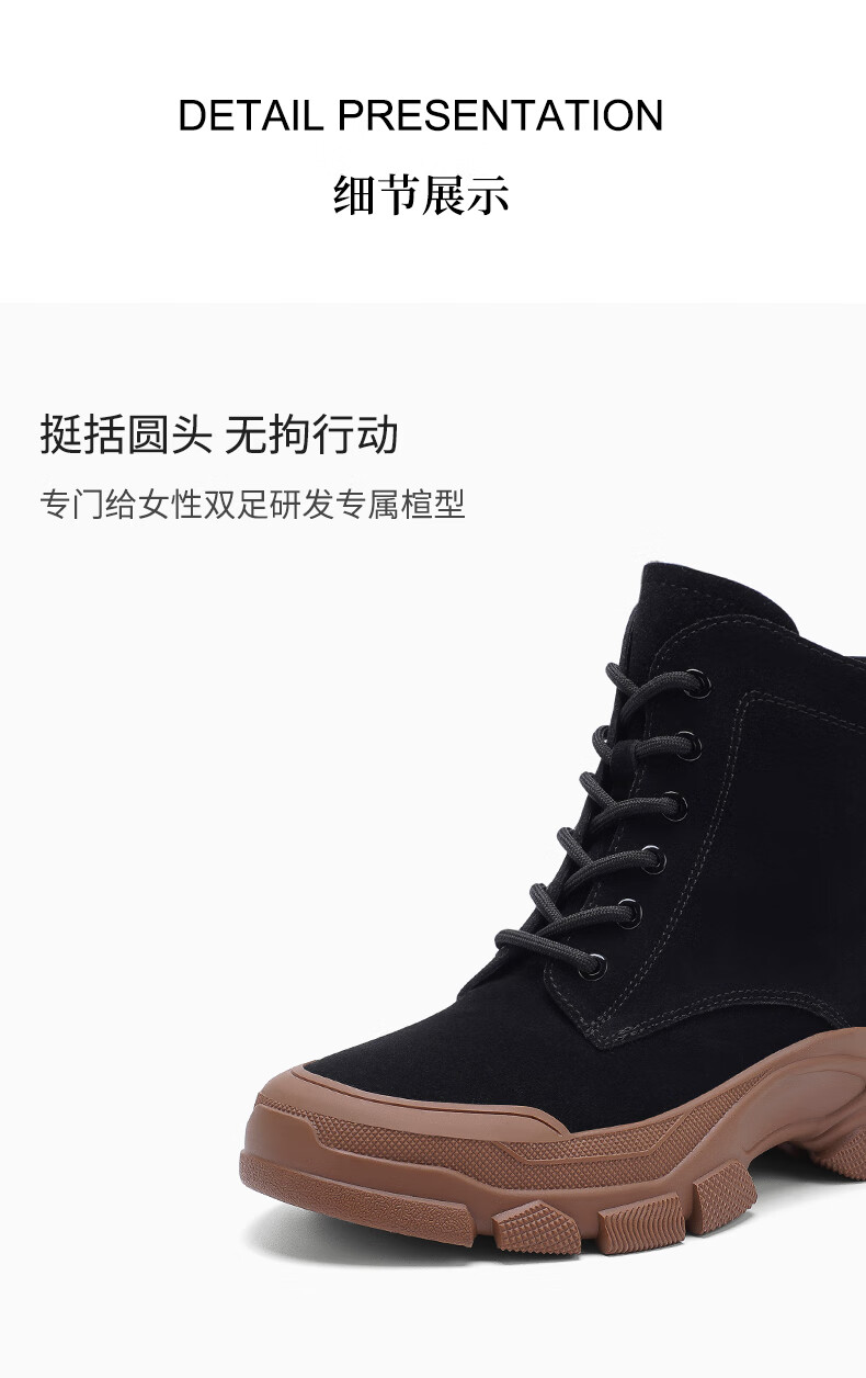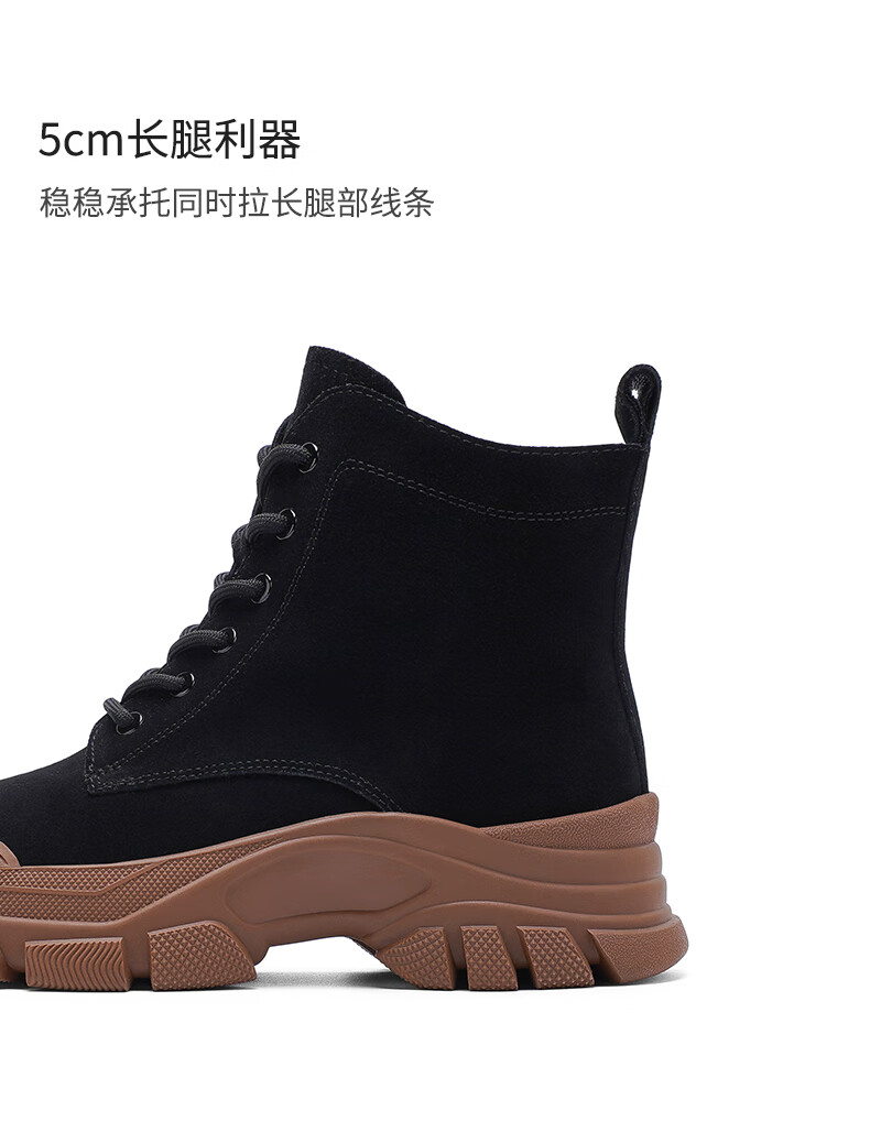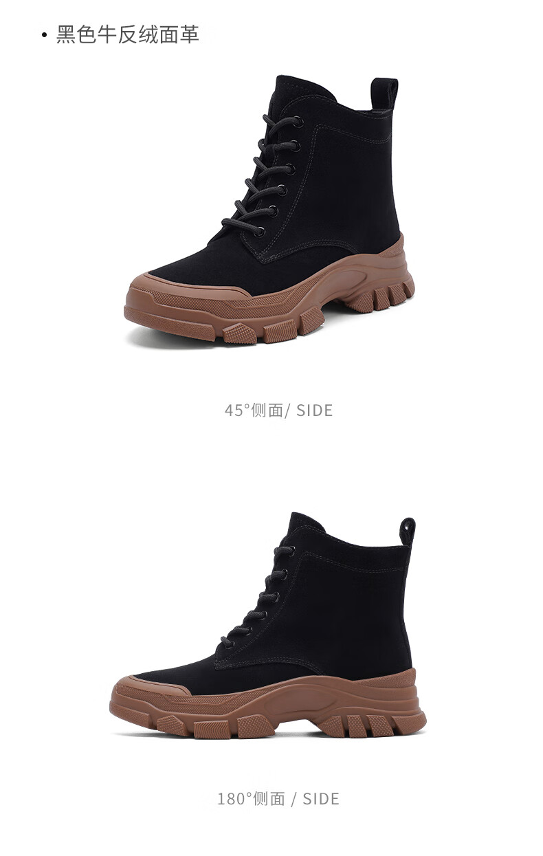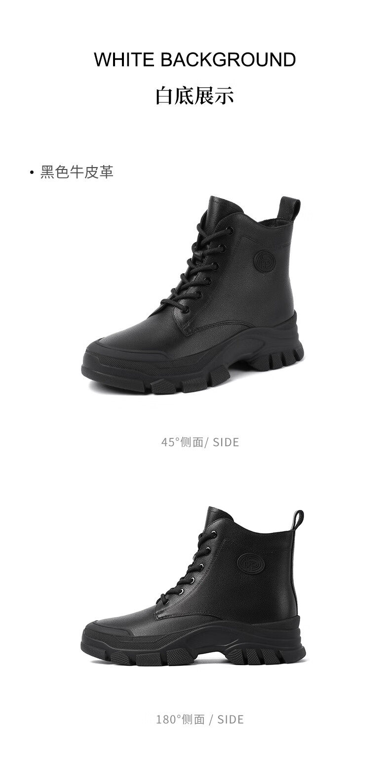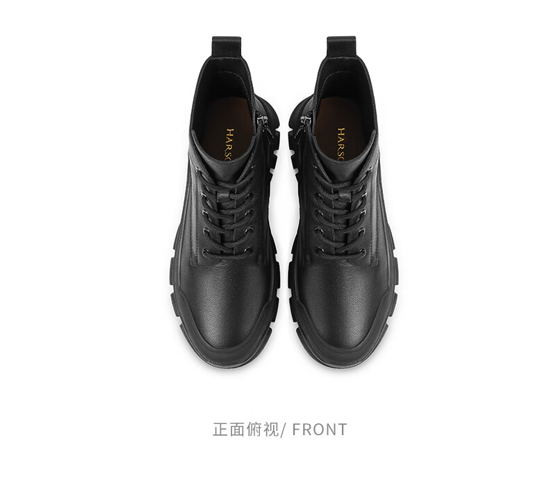 哈森(Harson)2025冬季马丁靴女厚底舒适休闲工装靴时尚短靴HA259031 黑色 牛皮革 34