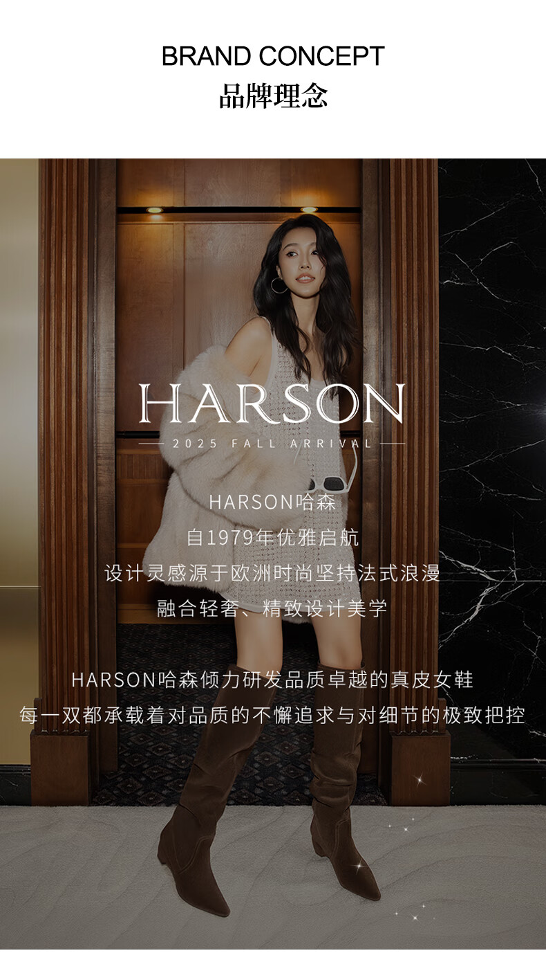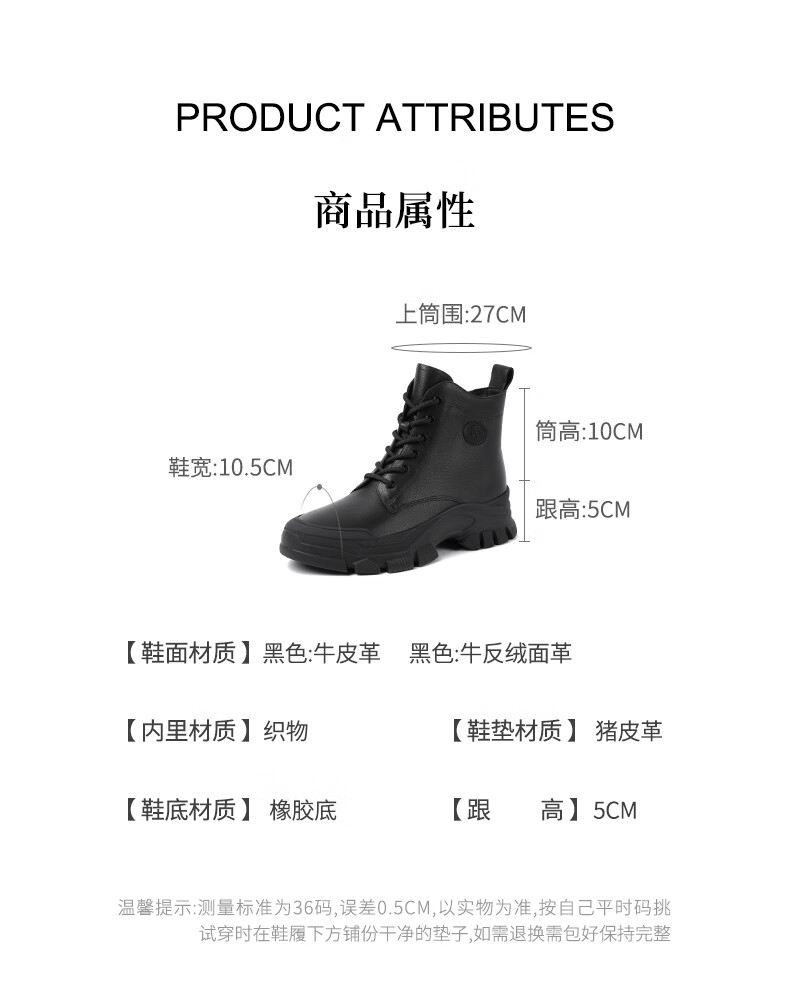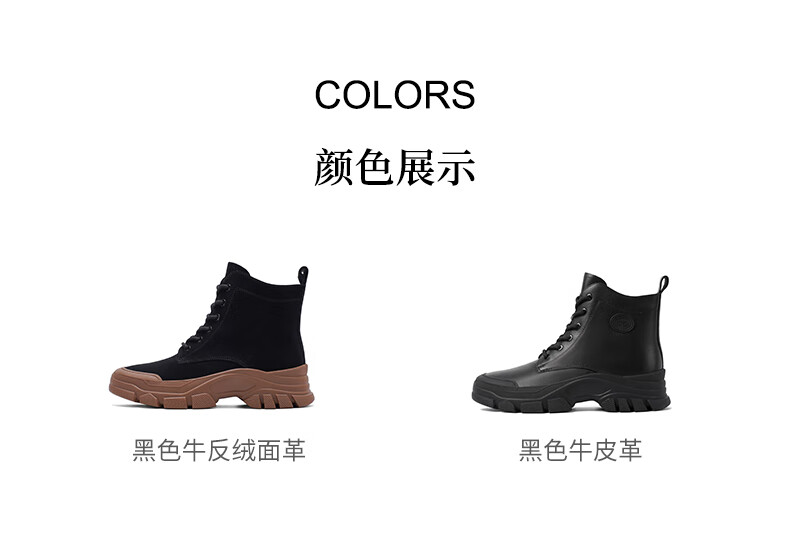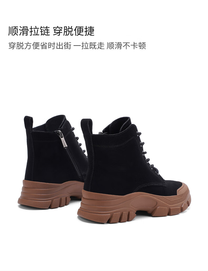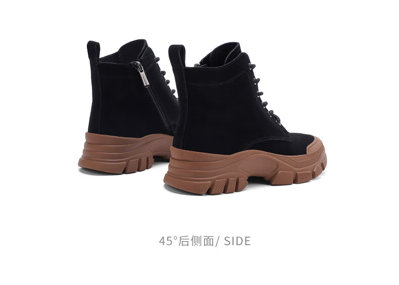 哈森(Harson)2025冬季马丁靴女厚底舒适休闲工装靴时尚短靴HA259031 黑色 牛皮革 34