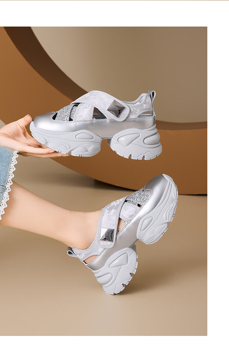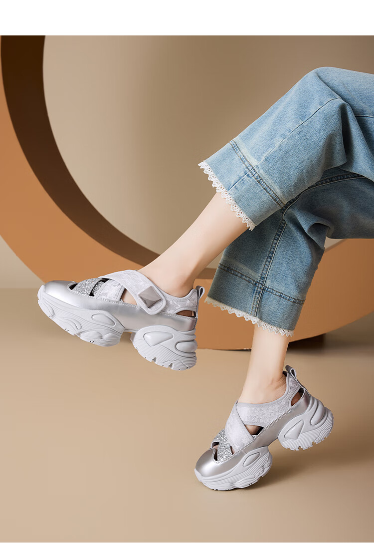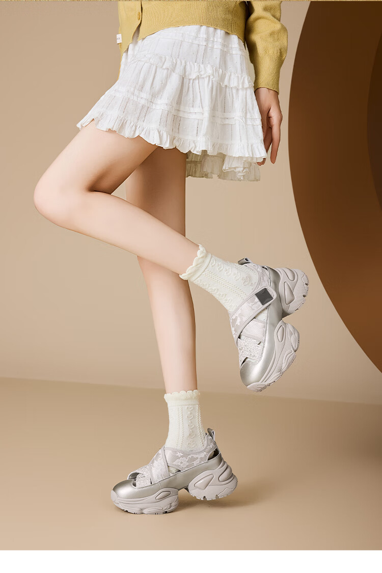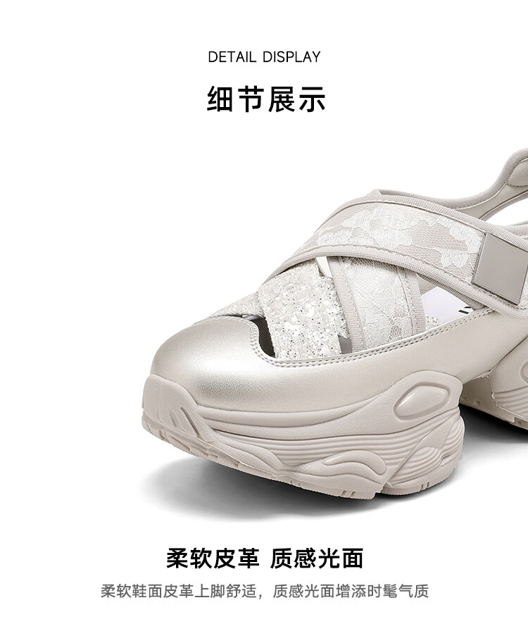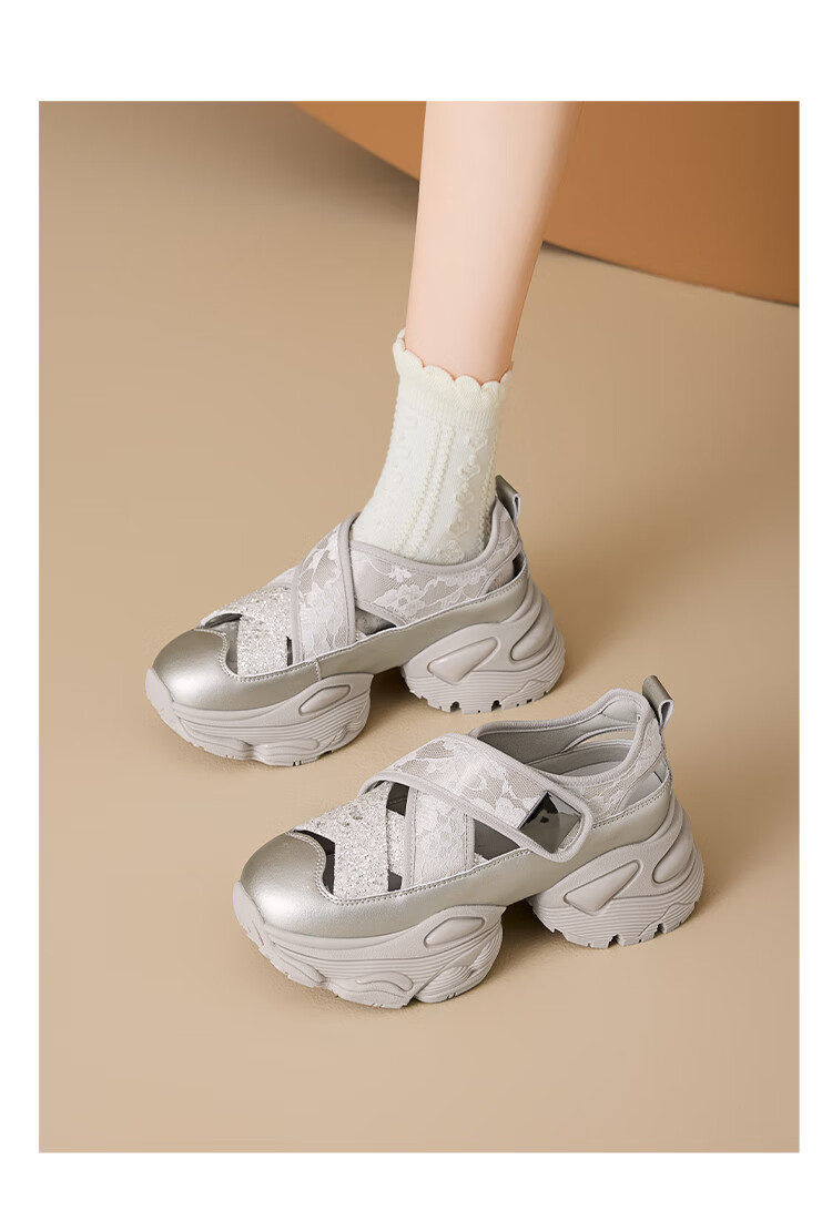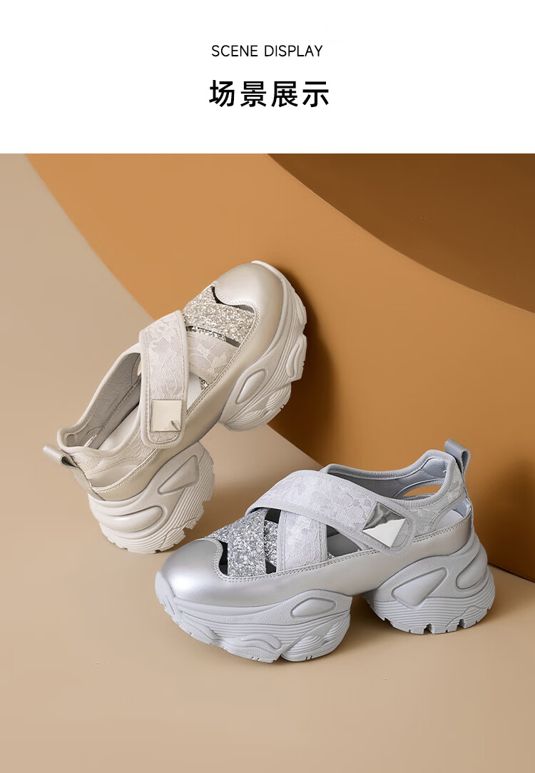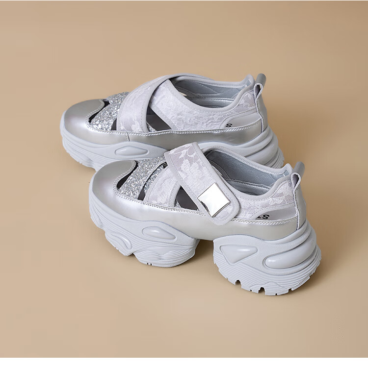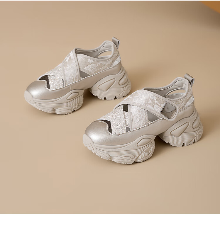 星期六女鞋2025春季新款厚底内增高镂空透气运动休闲鞋DKSSD1112VCH 米色 34