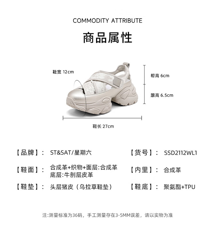 星期六时尚圆头厚底德训鞋2025秋季新款百搭舒适女鞋MTSSD3112CD5 米/黑 35