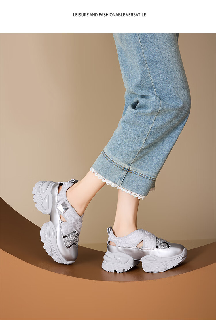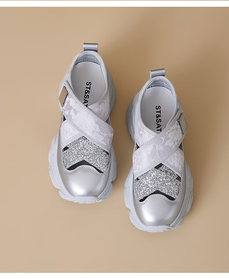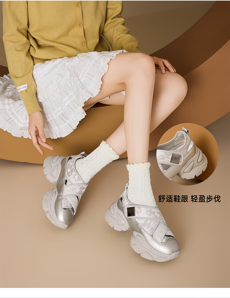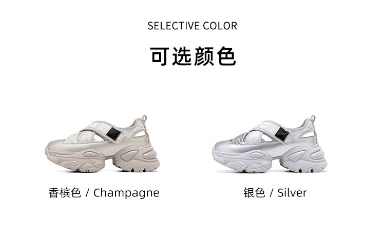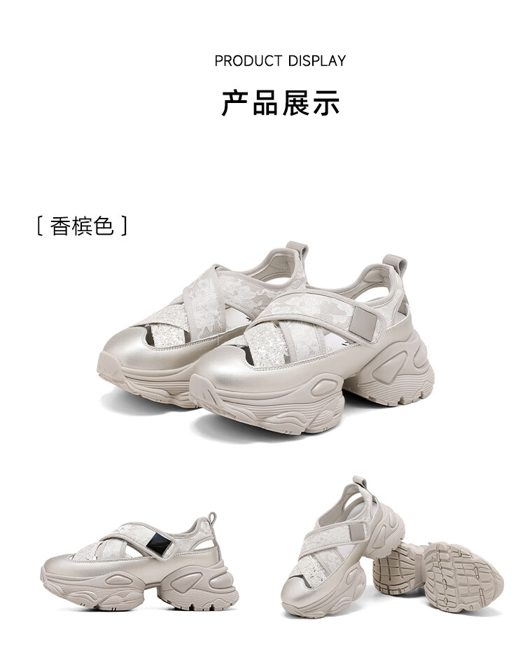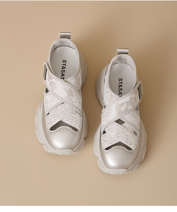 星期六圆头厚底时尚休闲鞋2025夏季新款百搭女鞋MTSSD2112WL1 香槟色 35