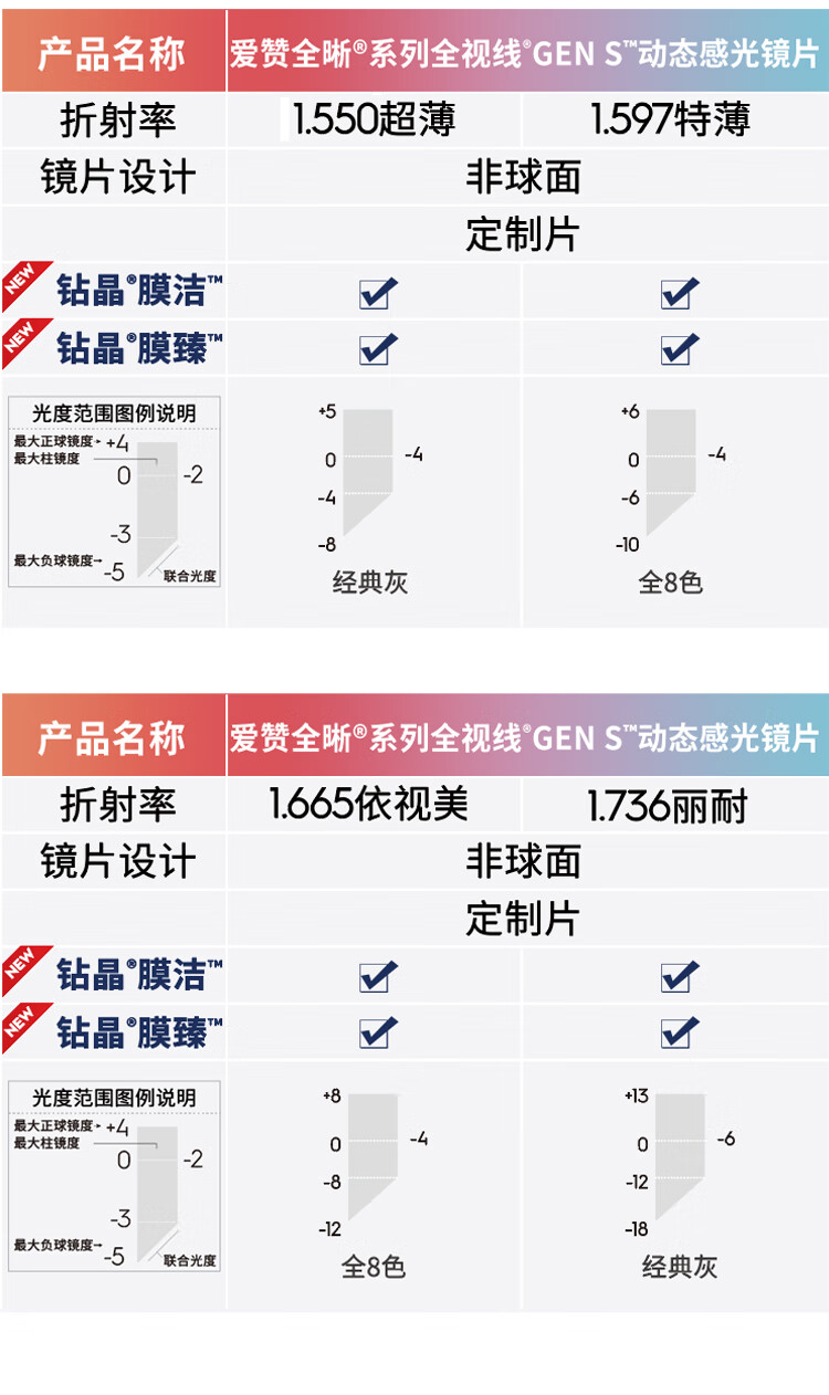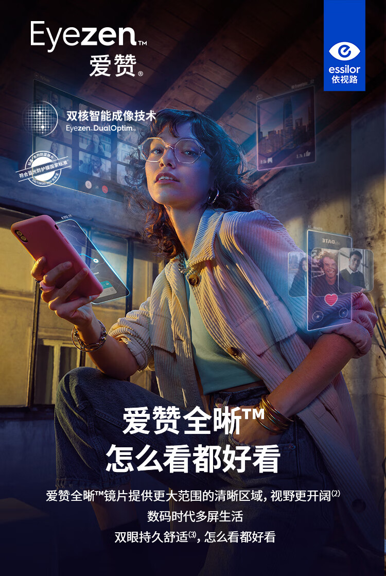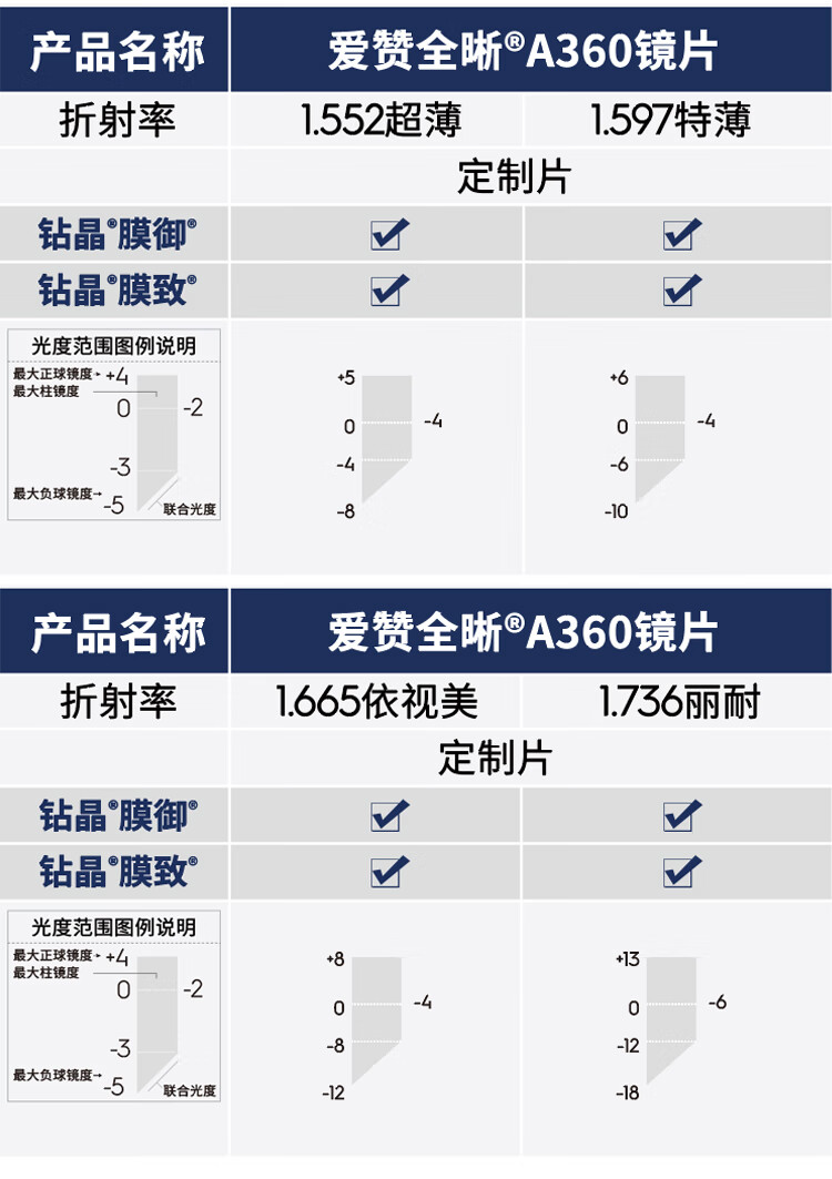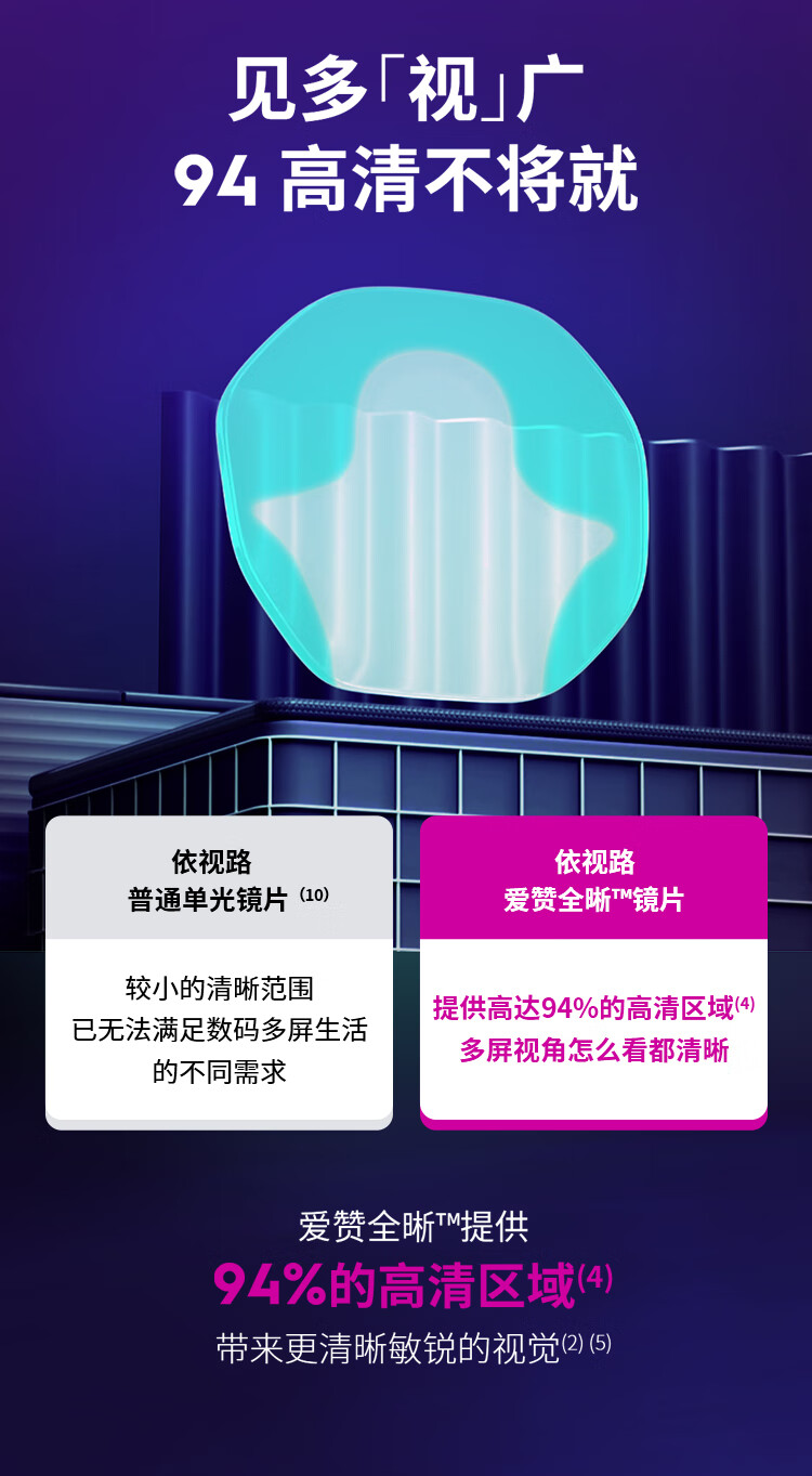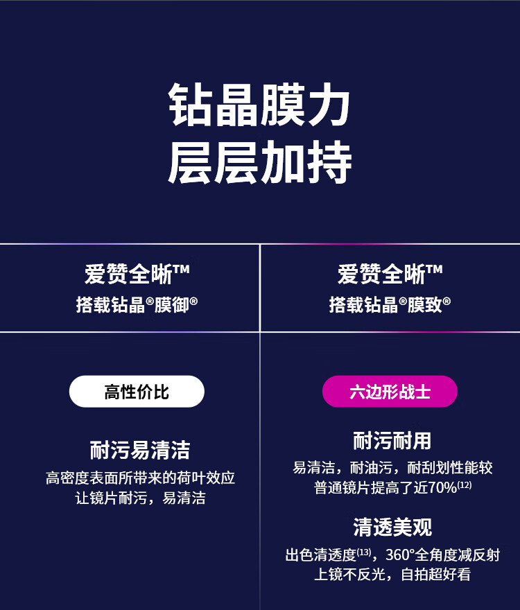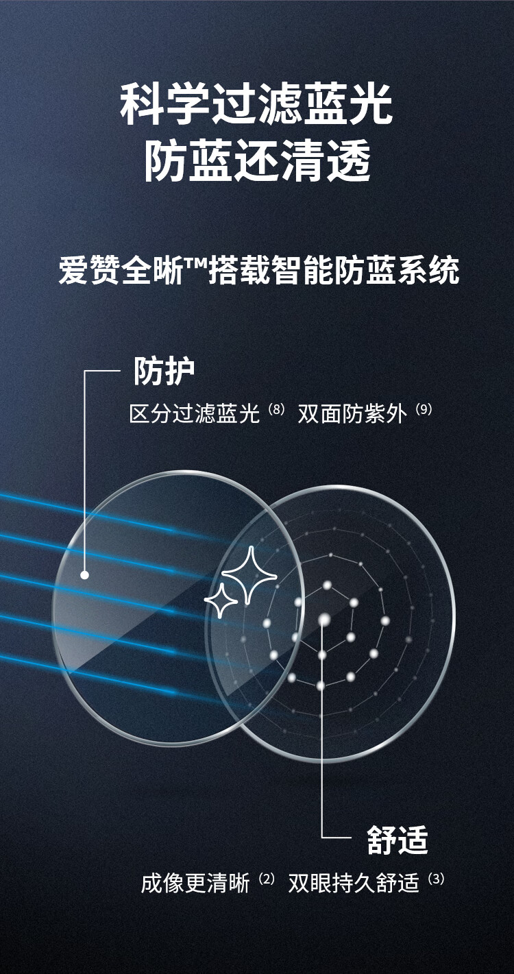 依视路(ESSILOR)眼镜片爱赞高清适界升全晰1.6 A360钻晶膜致防蓝光配镜片定制1片