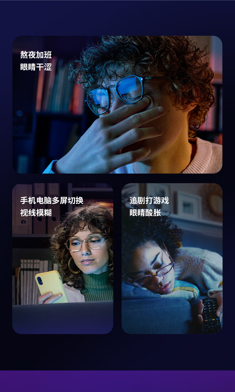 Quark官方【美国专利黑色素镜片】近视夹片防蓝光眼镜防紫外线sm9502