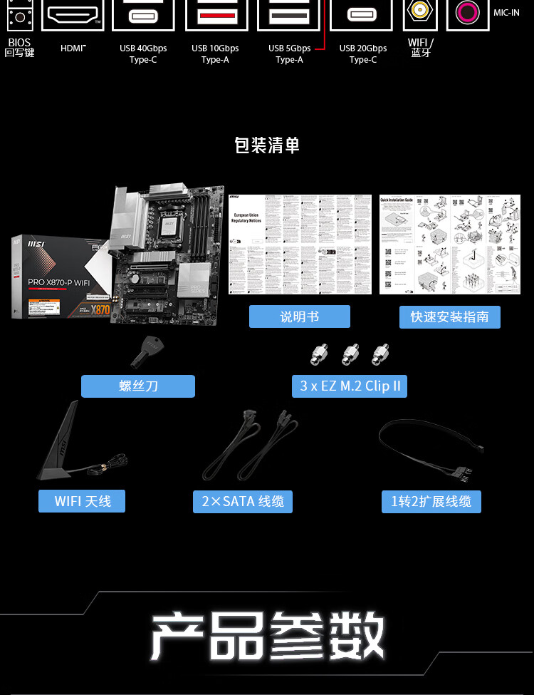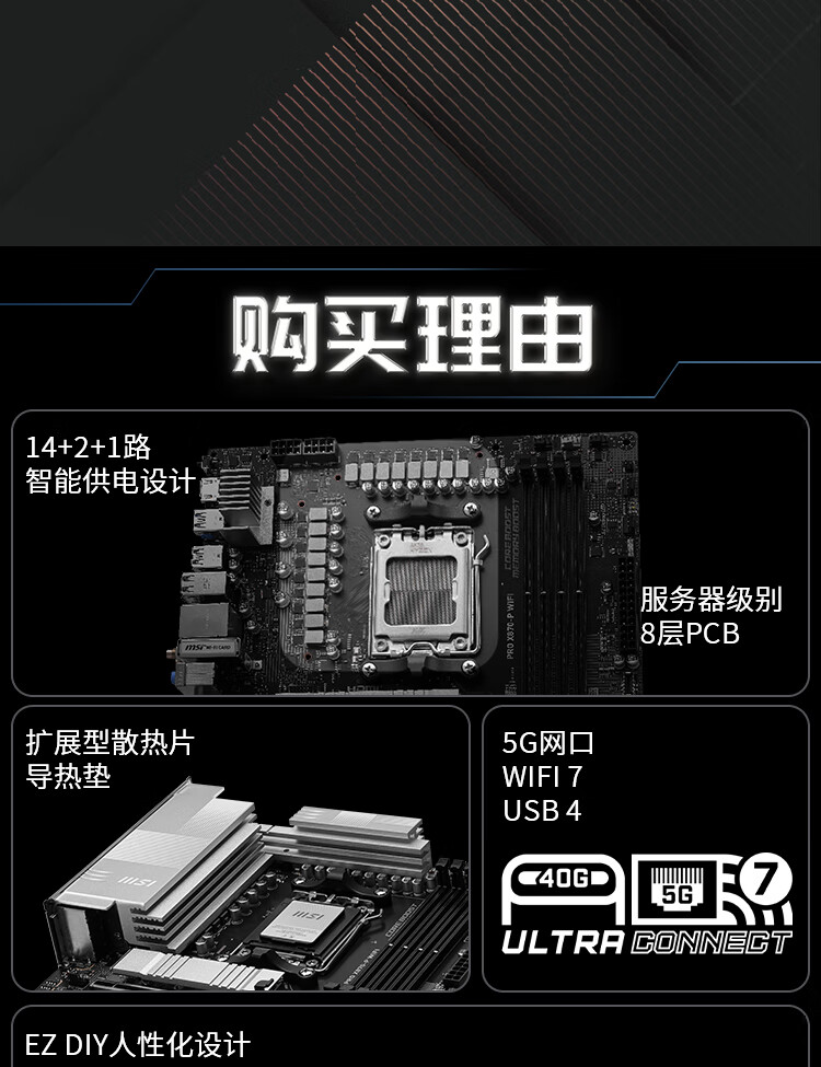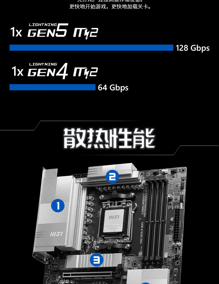 微星(MSI)PRO X870-P WIFI 支持CPU 9900X3D/9950X3D/9800X3D(AMD X870/socket AM5)