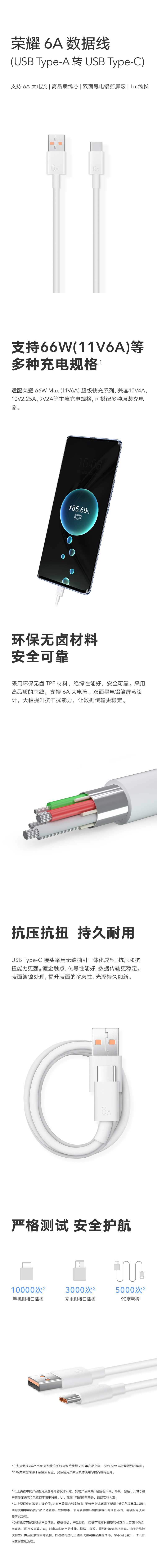 荣耀 6A大电流数据线 USB Type-A转 USB Type-C接口 适配荣耀Magic7/荣耀300 华为Mate70