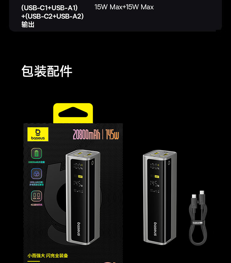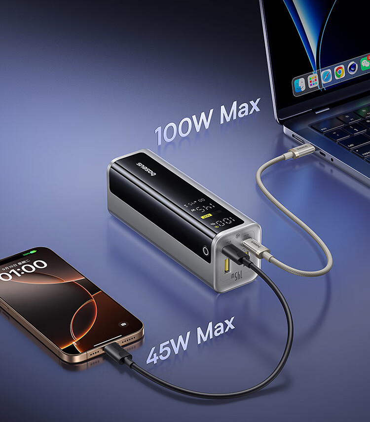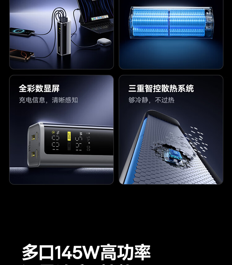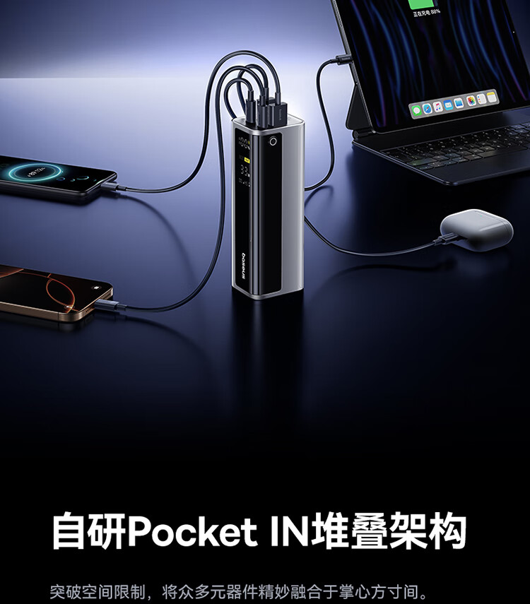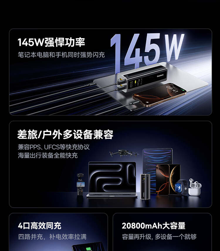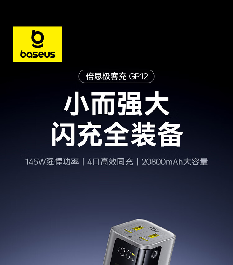 倍思极客充国标3C认证PPS协议充电宝20800毫安大容量145W/100W大功率快充移动电源可上飞机笔记本适用