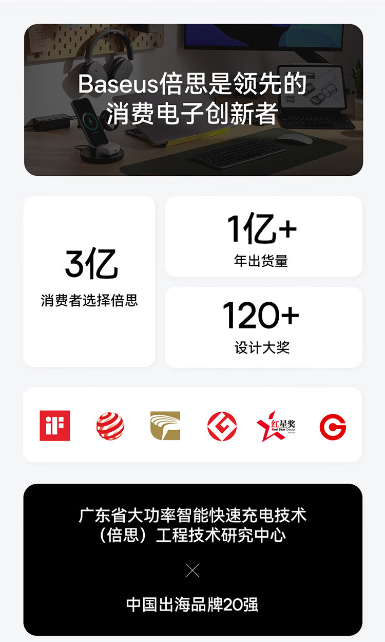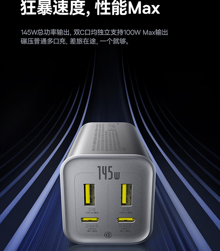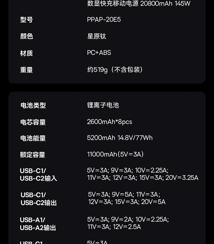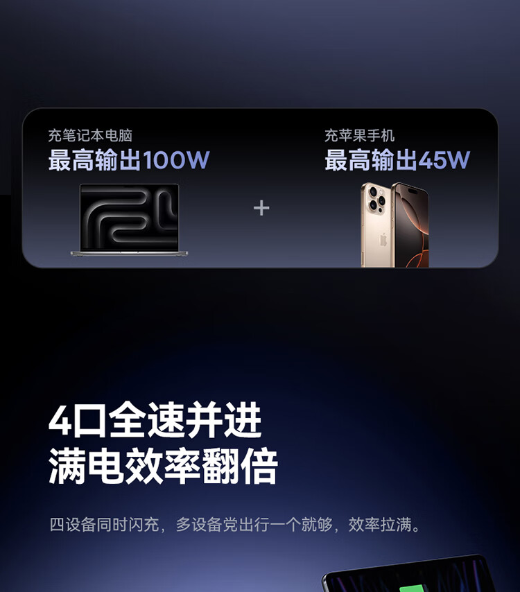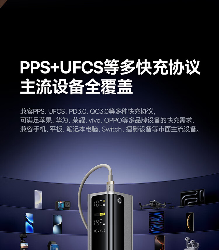 倍思极客充国标3C认证PPS协议充电宝20800毫安大容量145W/100W大功率快充移动电源可上飞机笔记本适用