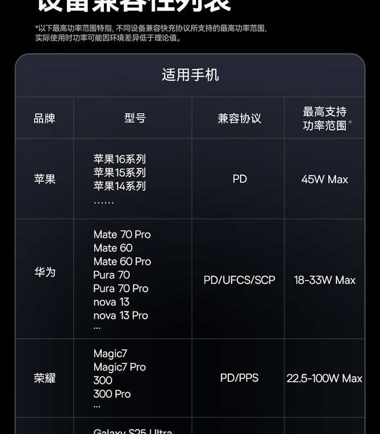 品胜充电宝240W总功率带线140W快充27000mAh移动电源可上飞机适用小米17苹果笔记本17promax/Air60W40W