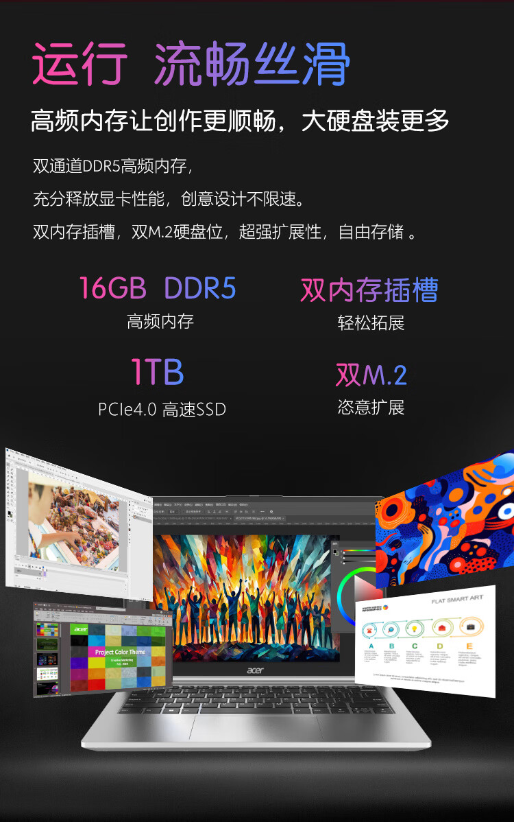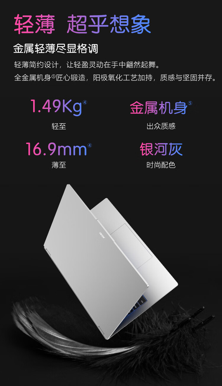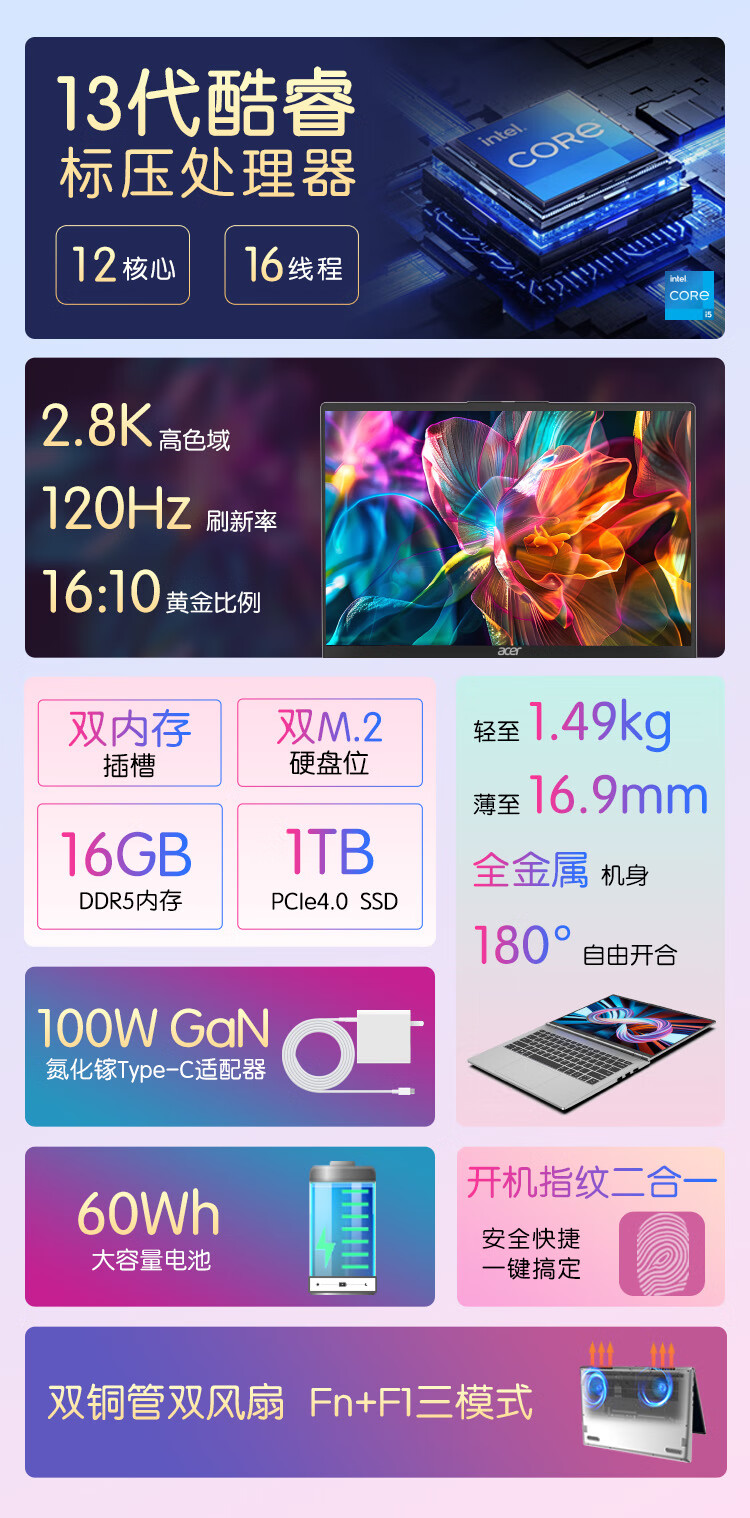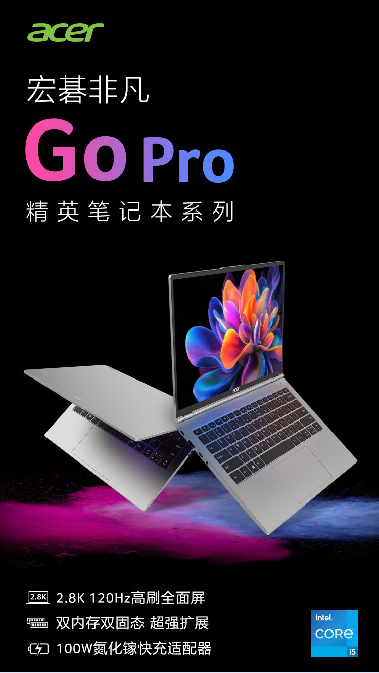 宏碁(acer)非凡Go Pro【国家补贴】14英寸2.8K轻薄本 办公本笔记本电脑学生 (13代酷睿i5-13500H 16G 1TB)灰