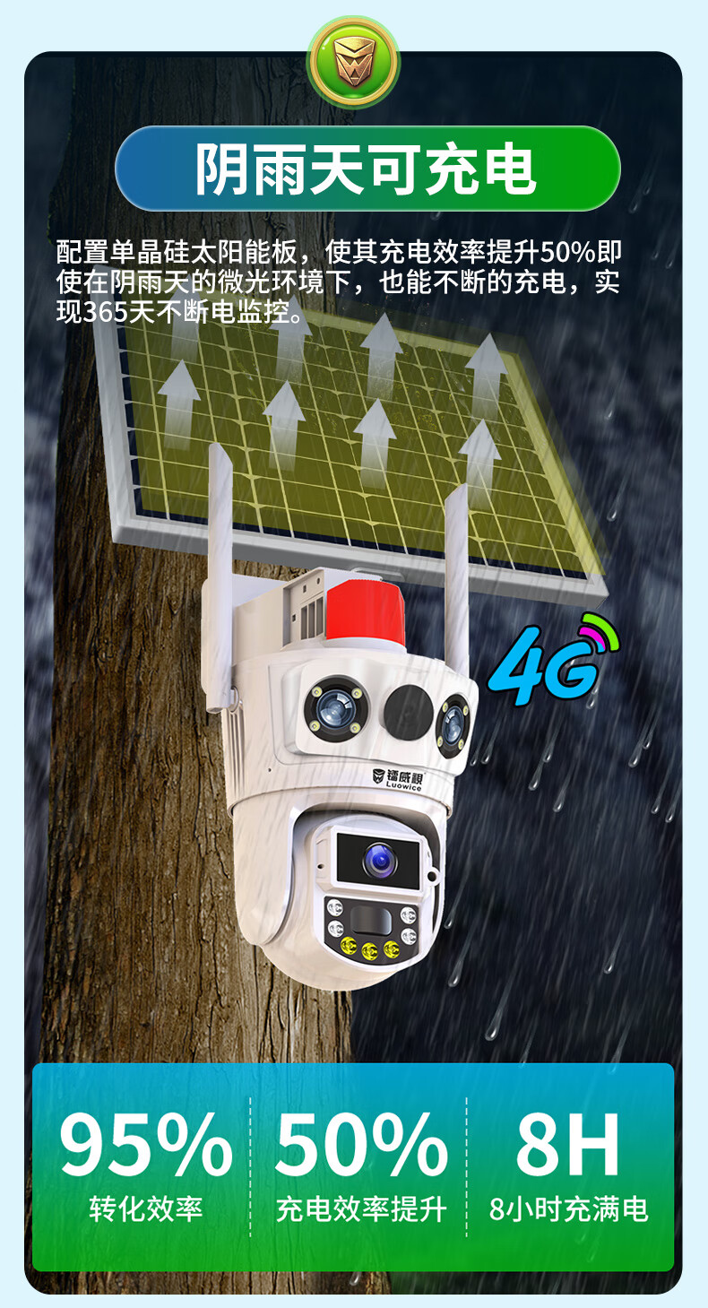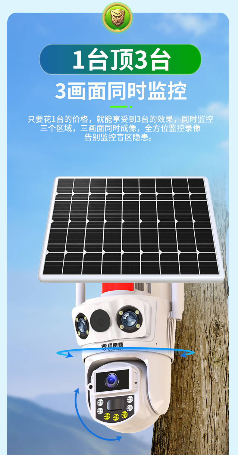 镭威视4g太阳能户外摄像头终身免流量室外免插电无需连wifi手机远程监控器家用360度无死角全景高清夜视