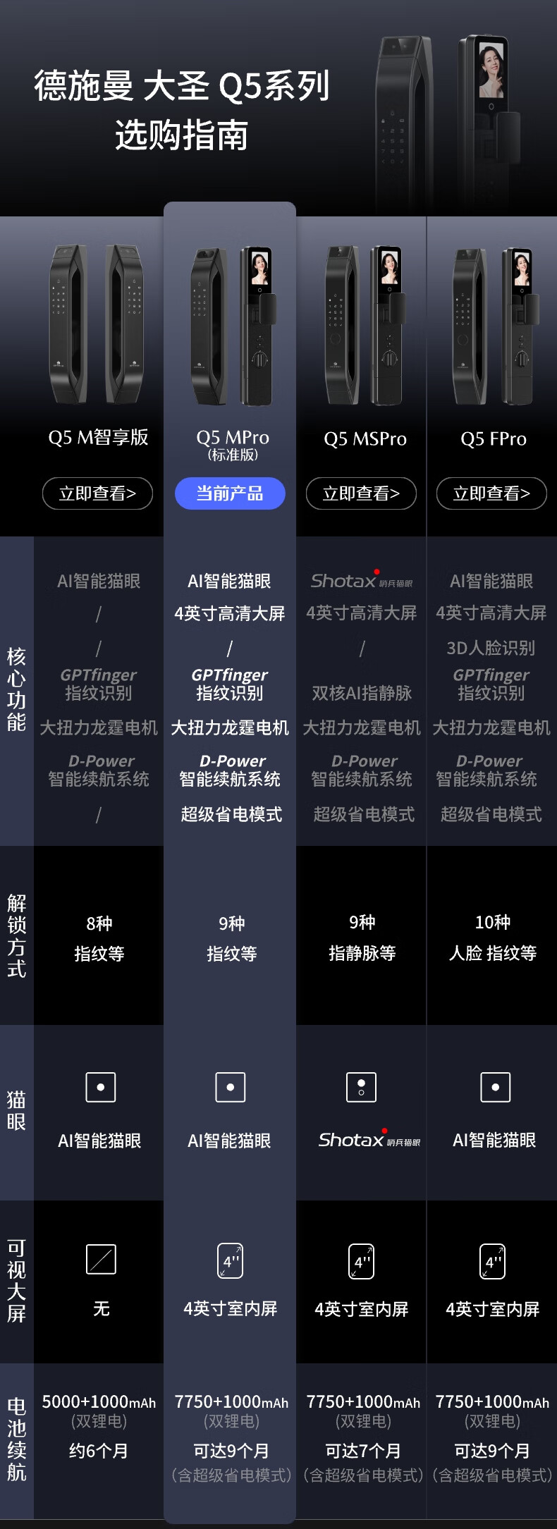 德施曼(DESMAN)可视猫眼大屏智能门锁 指纹识别电子密码锁 大圣Q5MPro(标准版)