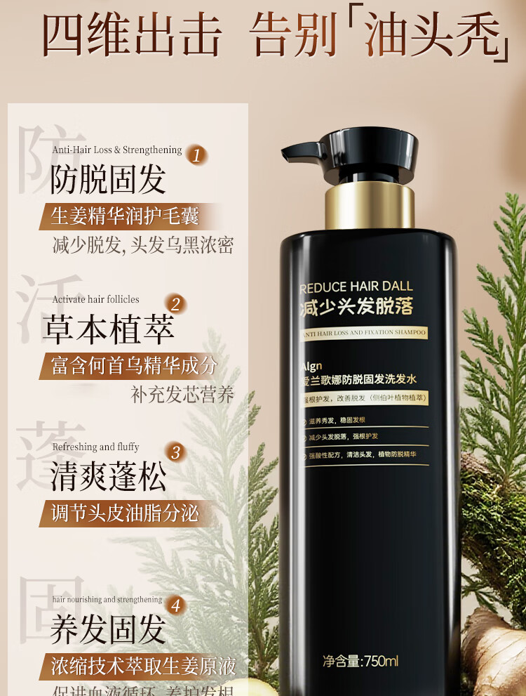 爱兰歌娜防脱固发洗发水减少头发掉落控油去屑止痒洗头膏洗发露热销榜第一 【减少头发掉落】防脱固发洗发水 750ml*1瓶 防脱固发榜单NO.1
