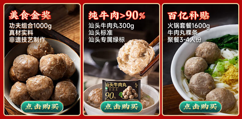 潮庭潮汕手打牛肉丸1斤+牛筋丸1斤 汕头老字号火锅食材生鲜烧烤夜宵
