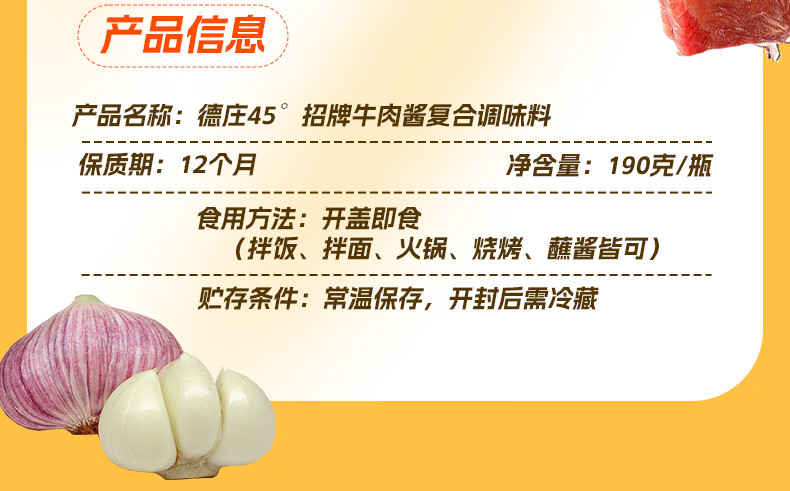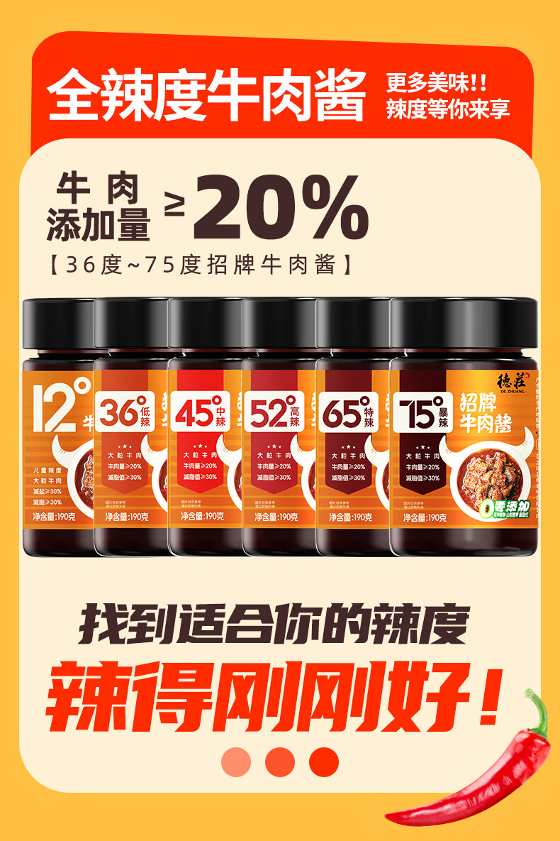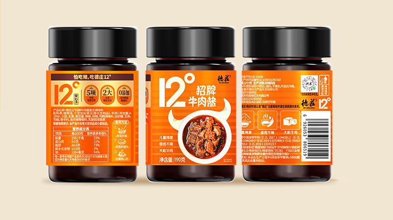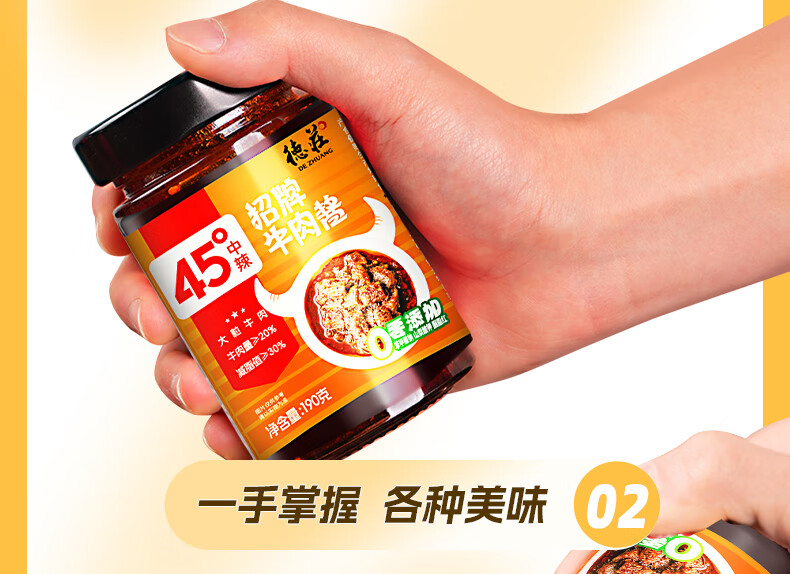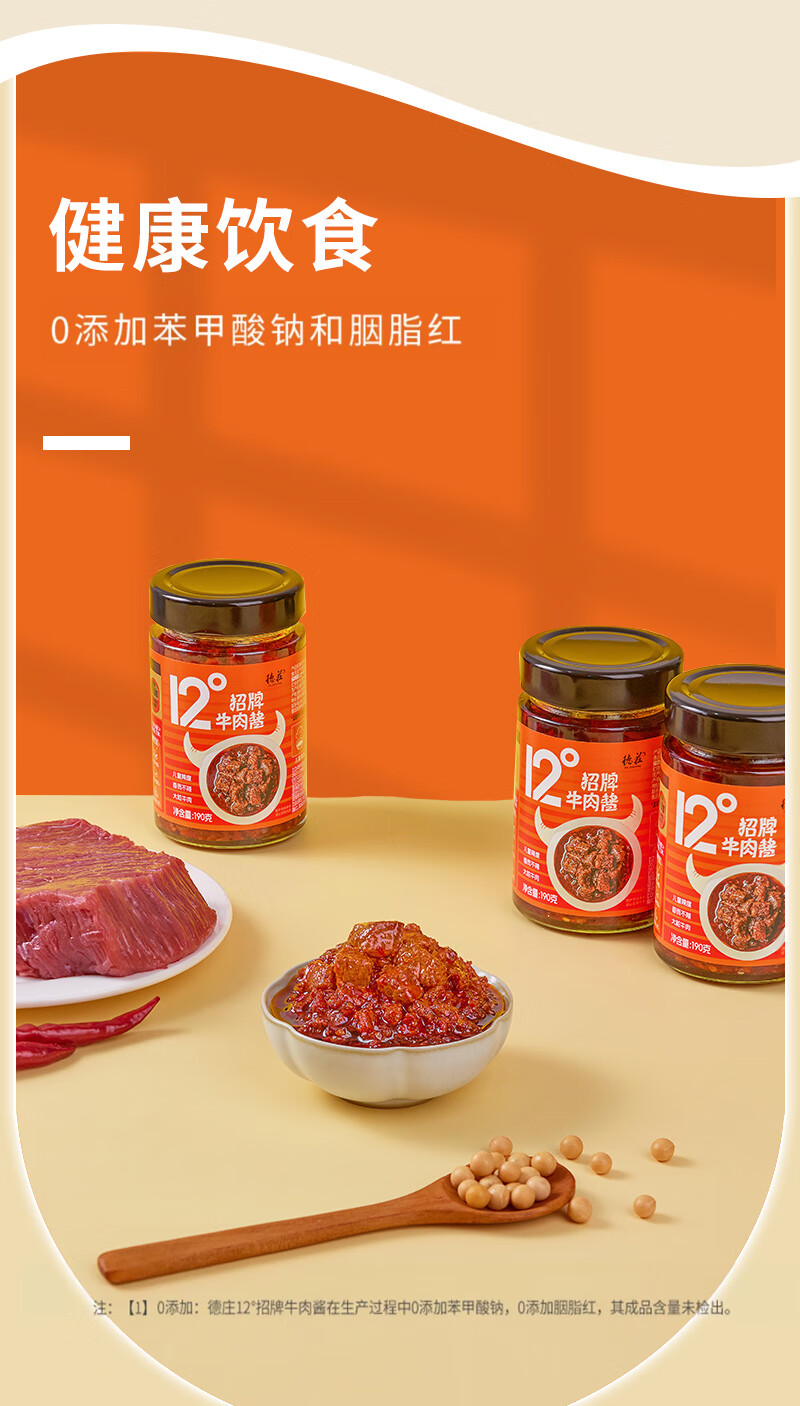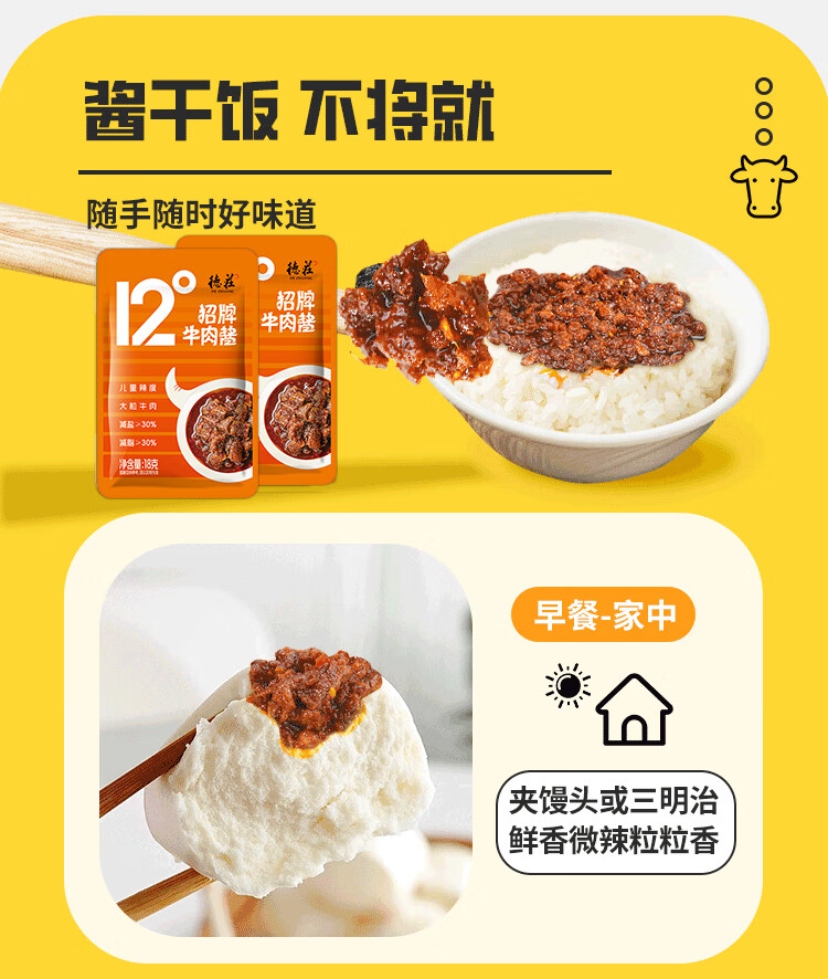 德庄 招牌12°微辣牛肉酱190g 线下商超同款 下饭菜拌饭夹馒头酱0添加 【南航同款】12°牛肉酱18g*10袋