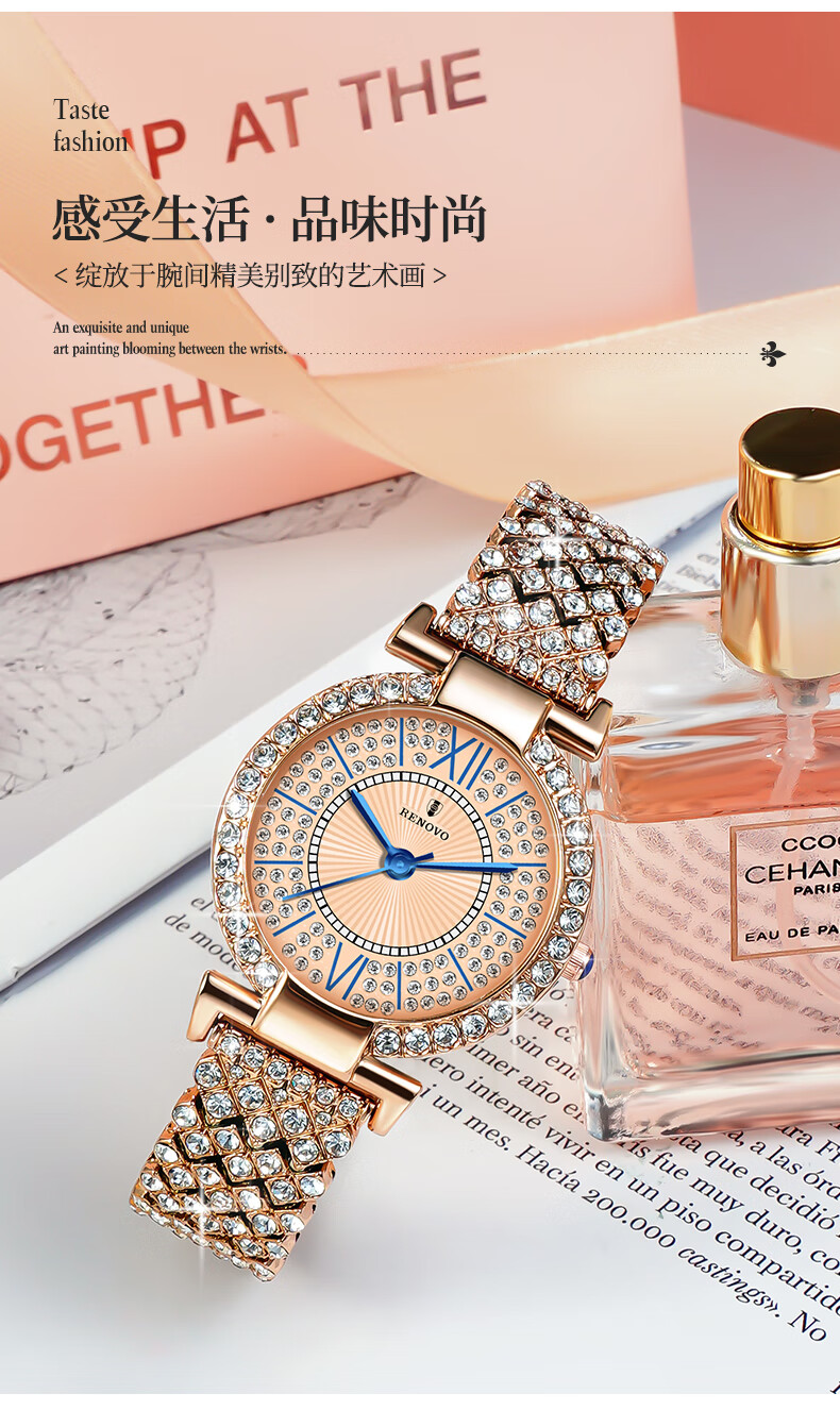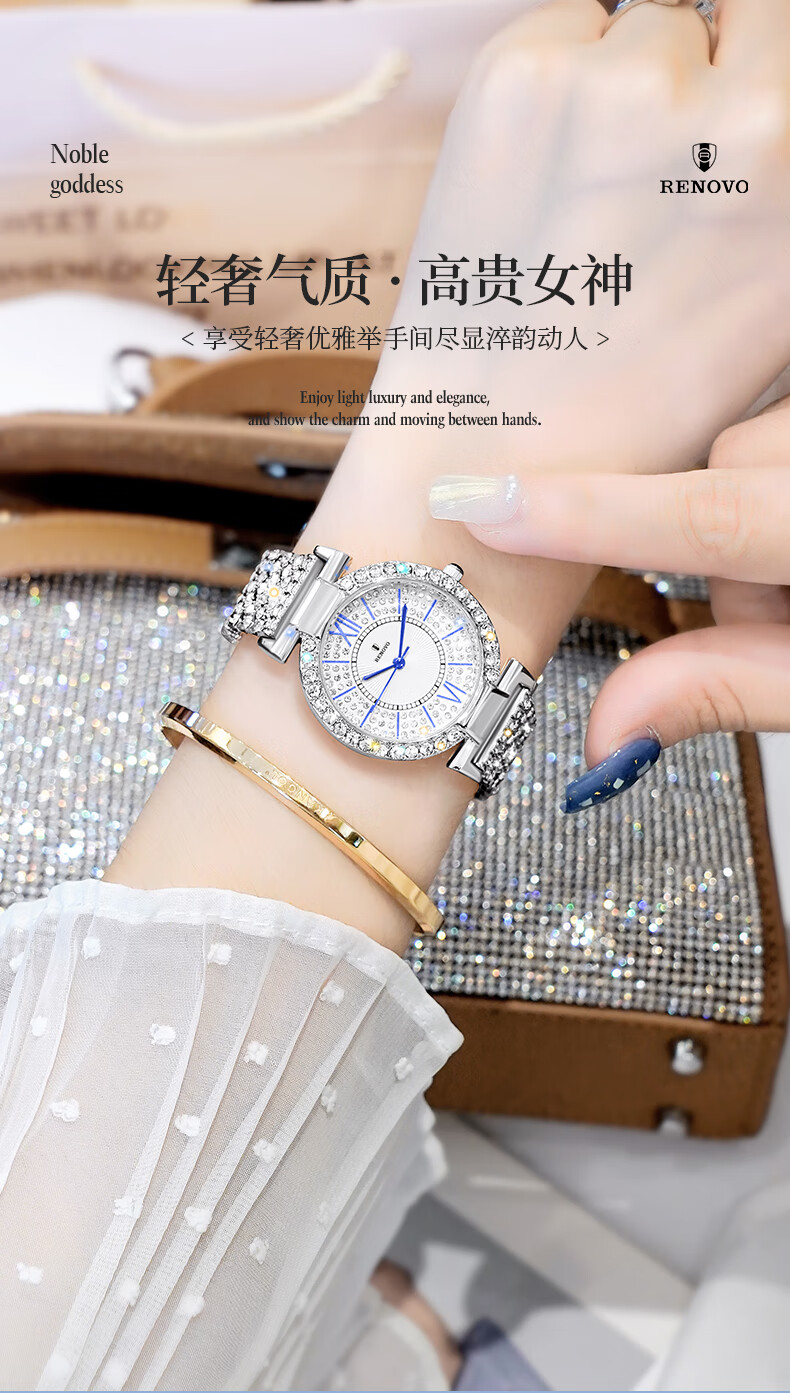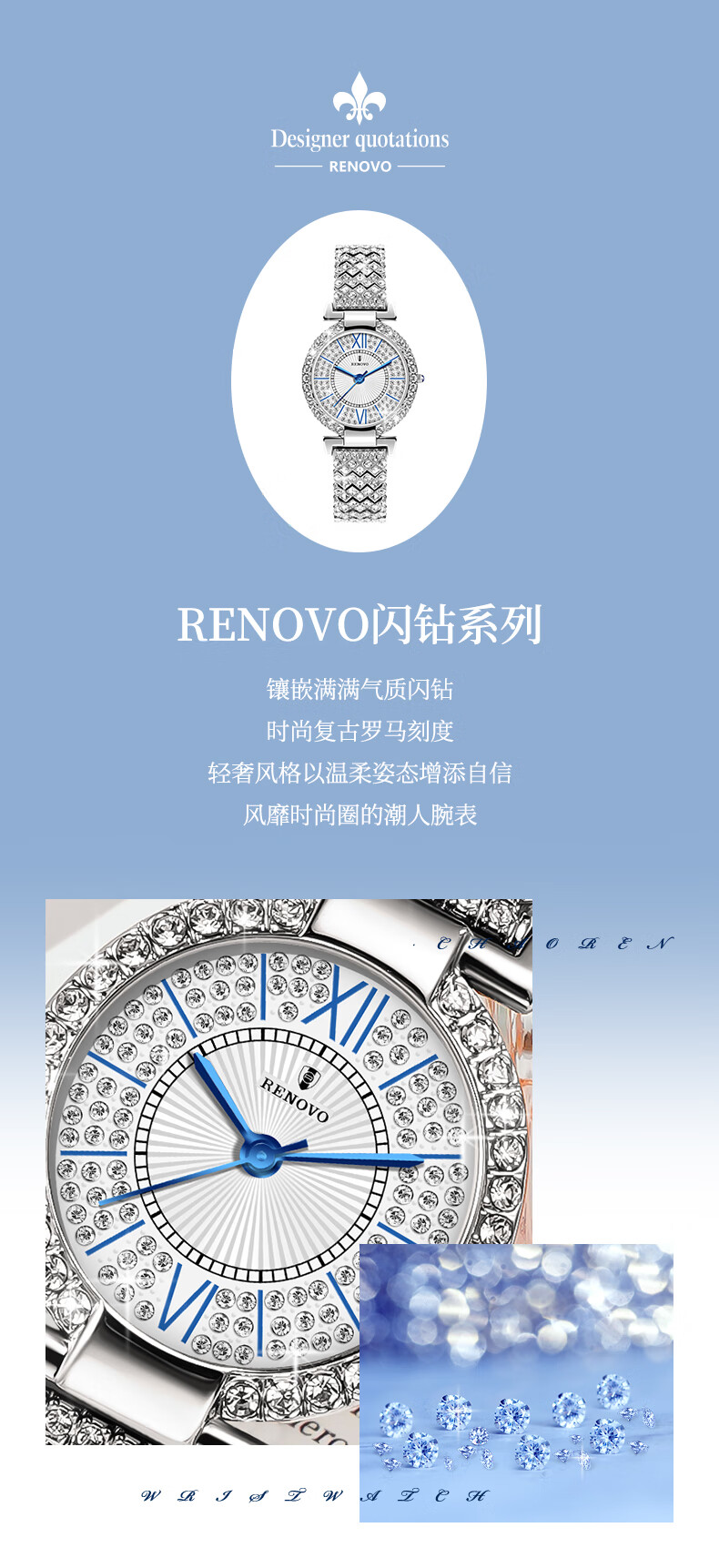 RENOVO女士手表满天星防水简约时尚商务气质高端女腕表