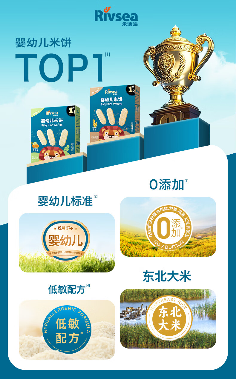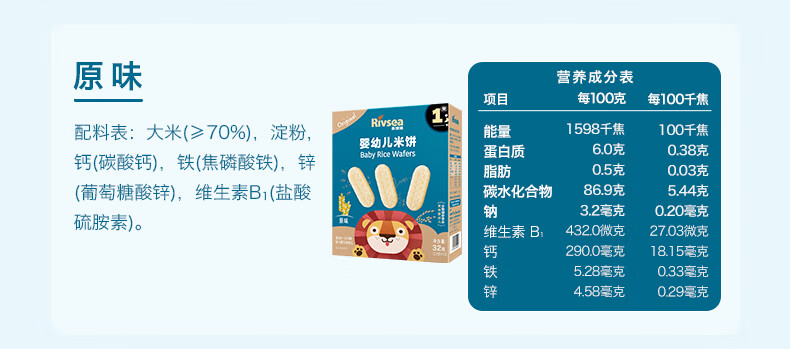 禾泱泱婴幼儿米饼 宝宝零食 早餐米饼6个月以上 无添加白砂糖 原味32g