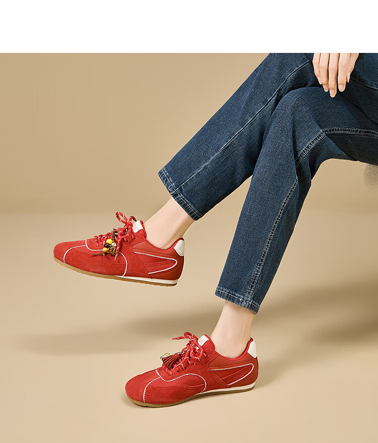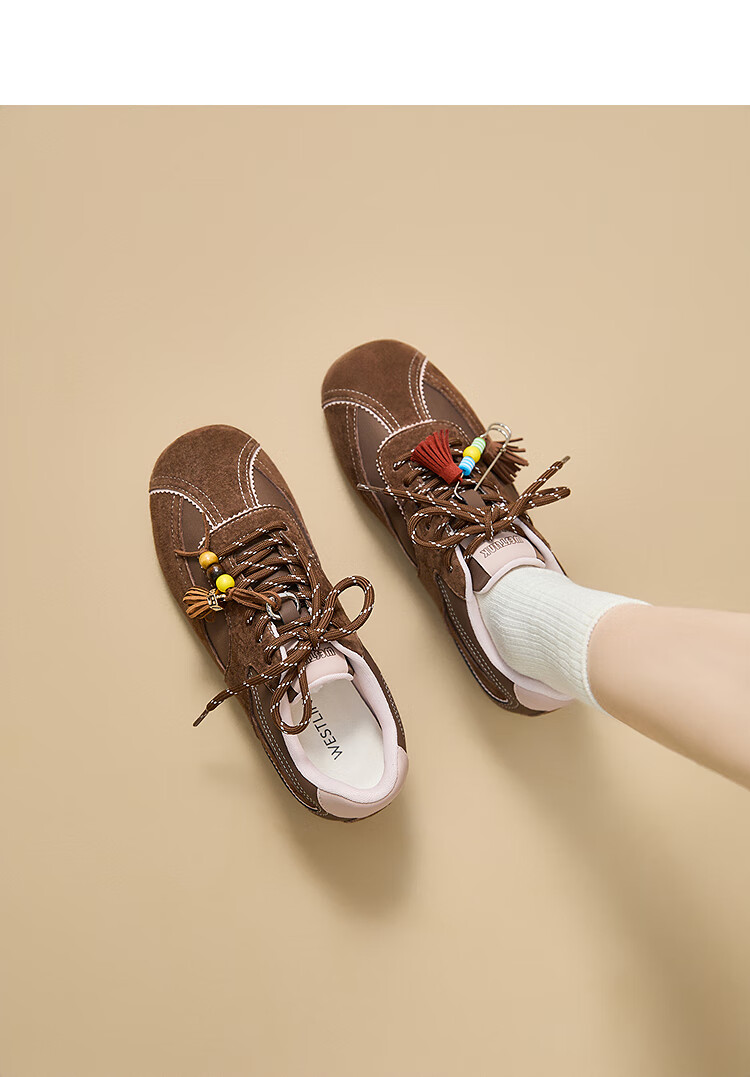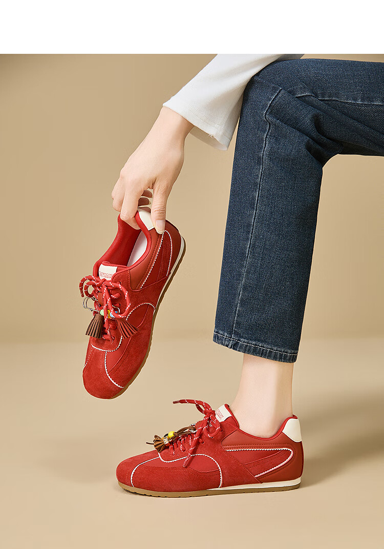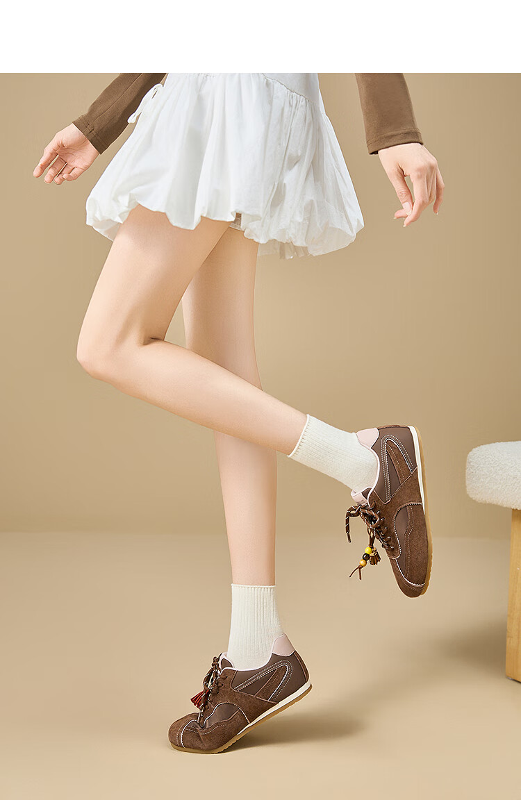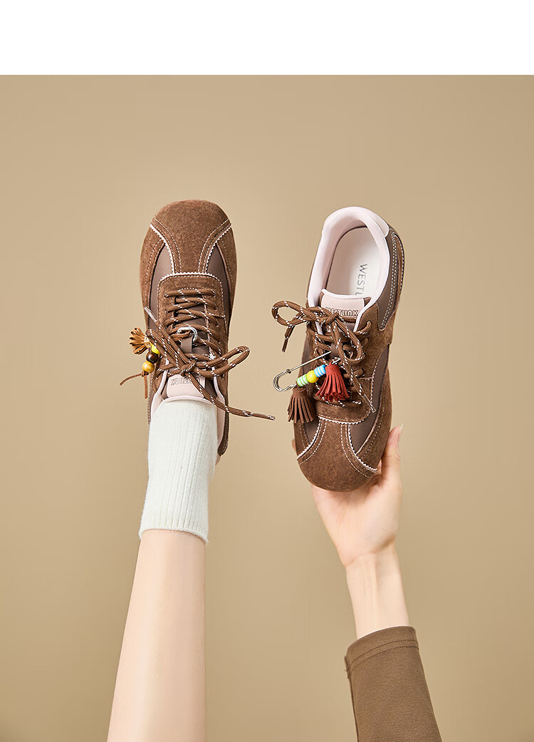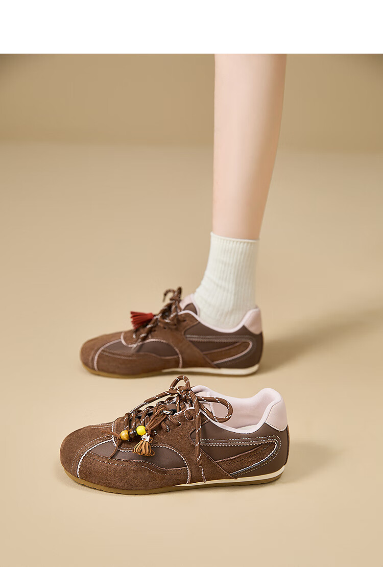 西遇内增高德训鞋女2025新款秋季超火红色赛车鞋子平底休闲运动鞋 棕色 预售10月30日 38 (240)