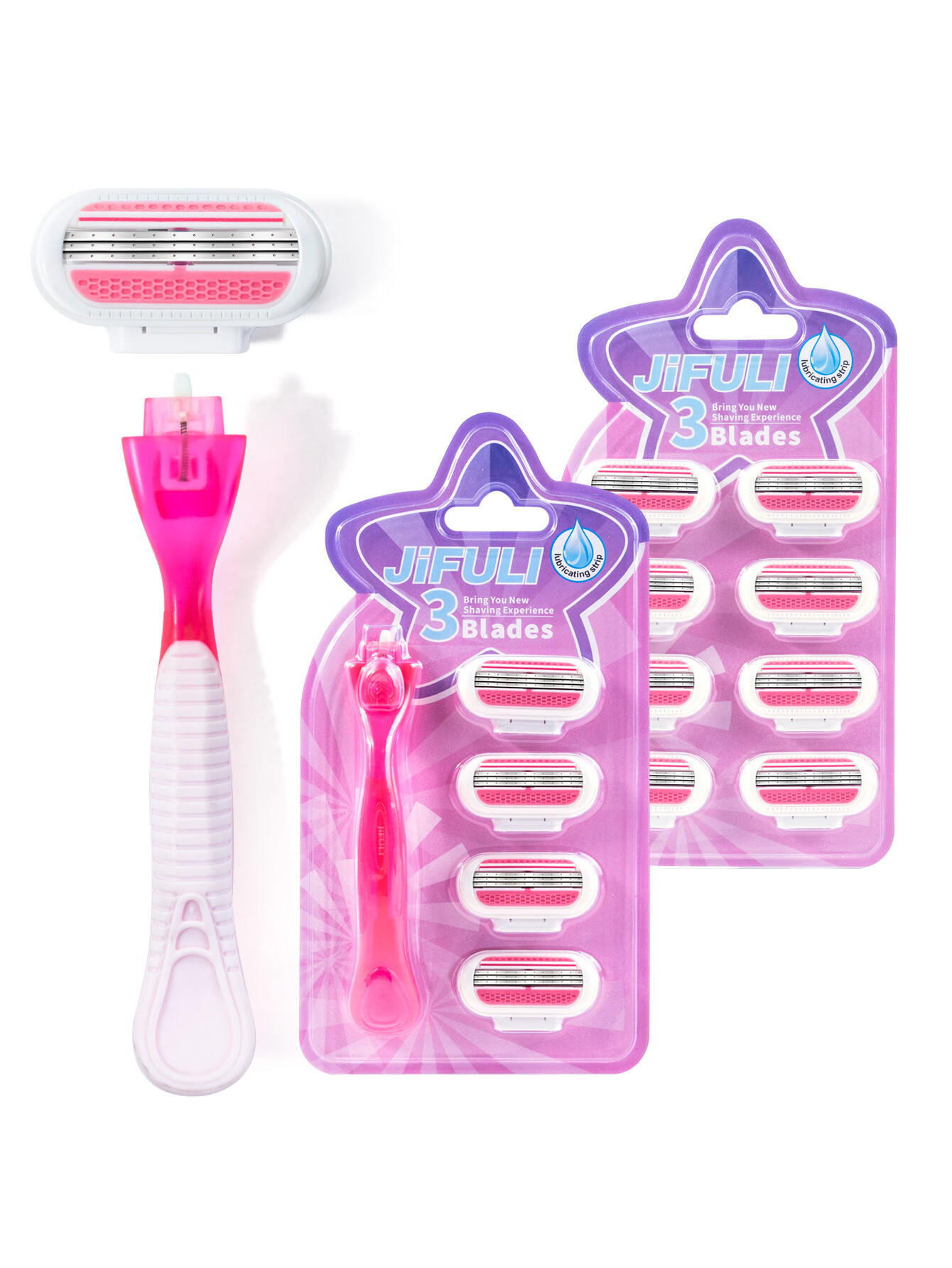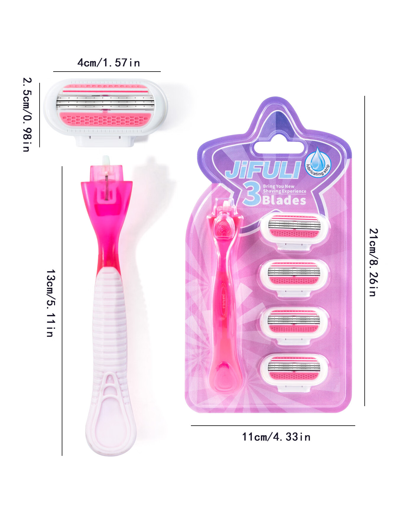 三层女士刮毛刀刮胡刀手动剃毛刀除毛器剃除腋毛腿毛 玫红色1刀架4刀头