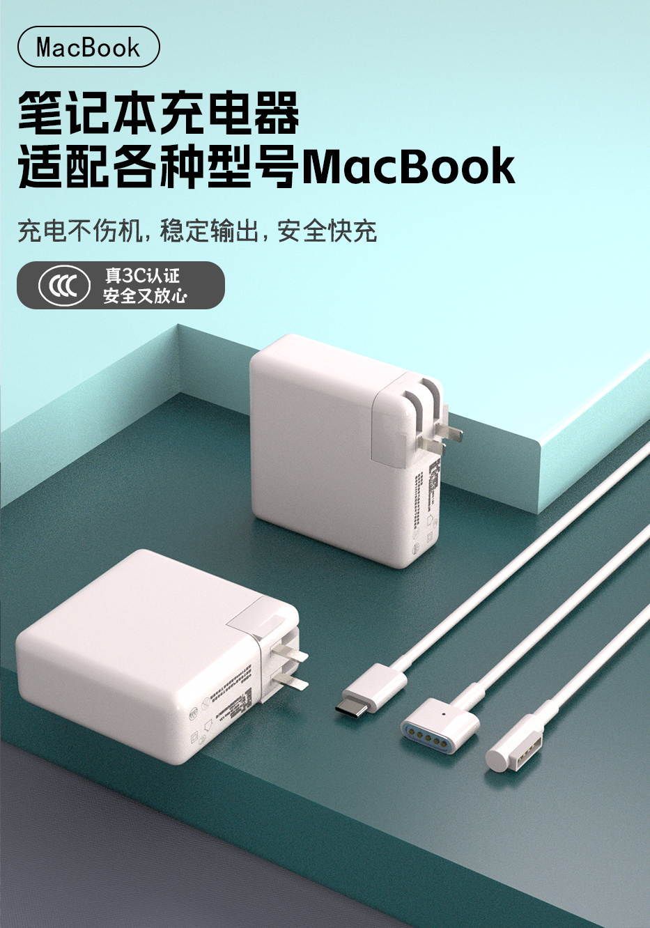 绿效苹果笔记本电脑充电器MacbookAir Pro电源适配器45W60W85W61W67W70W87W96W电源磁吸线/T/L/USB-C头 Type-C to Type-C线