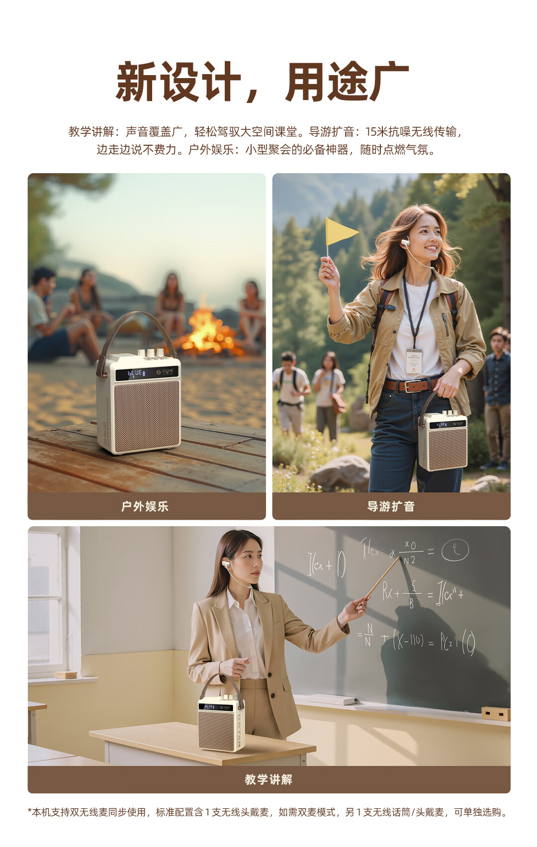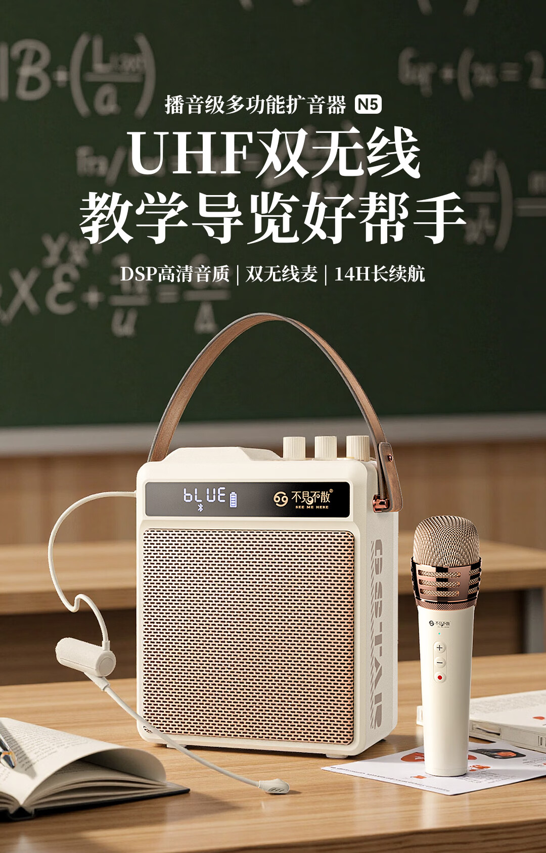 不见不散N5小蜜蜂扩音器【帮下歌】教师专用大音量无线话筒麦克风户外导游演讲开会K歌乐器弹唱喇叭音响 深灰色【无线手持麦+无线手持麦】
