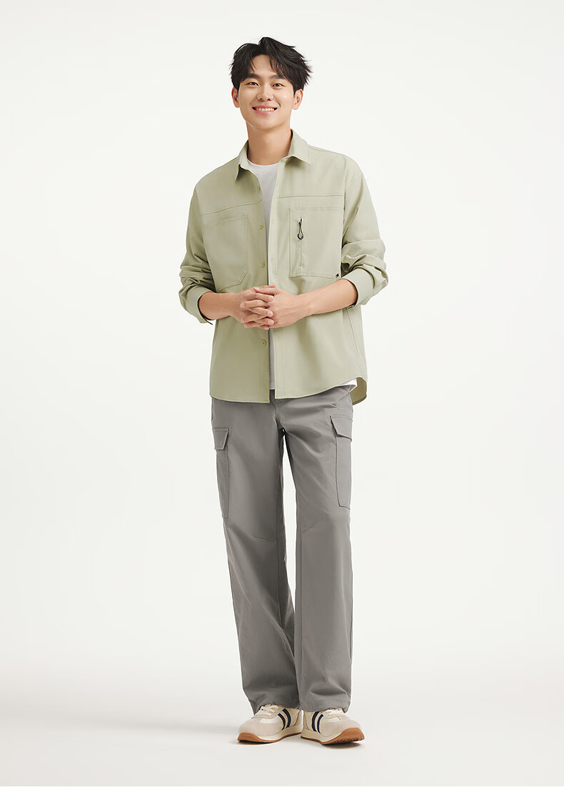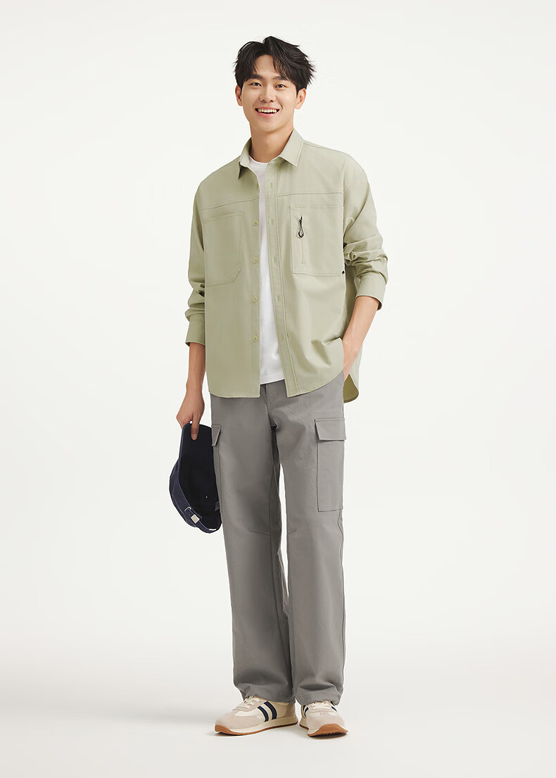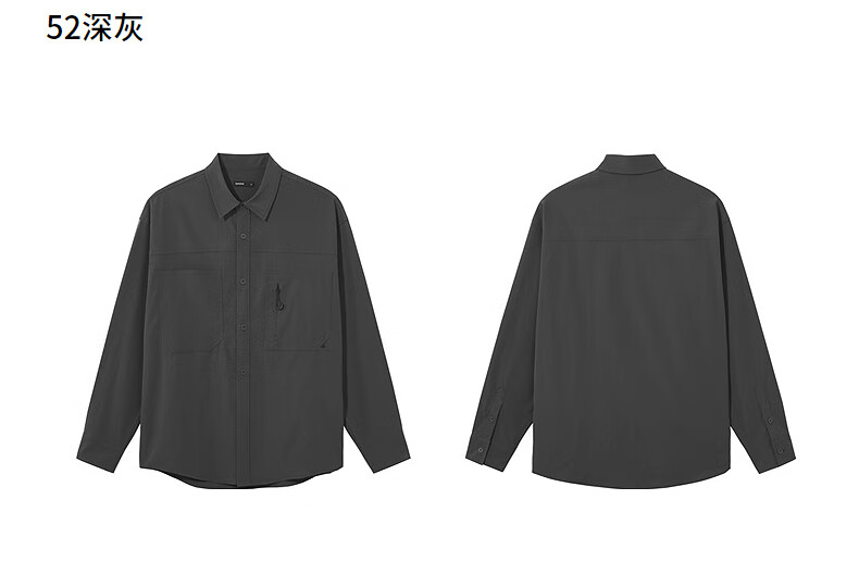 热风【商场同款】男士翻领长袖衬衫2025年秋季新款户外工装风初秋外套 52深灰 XL