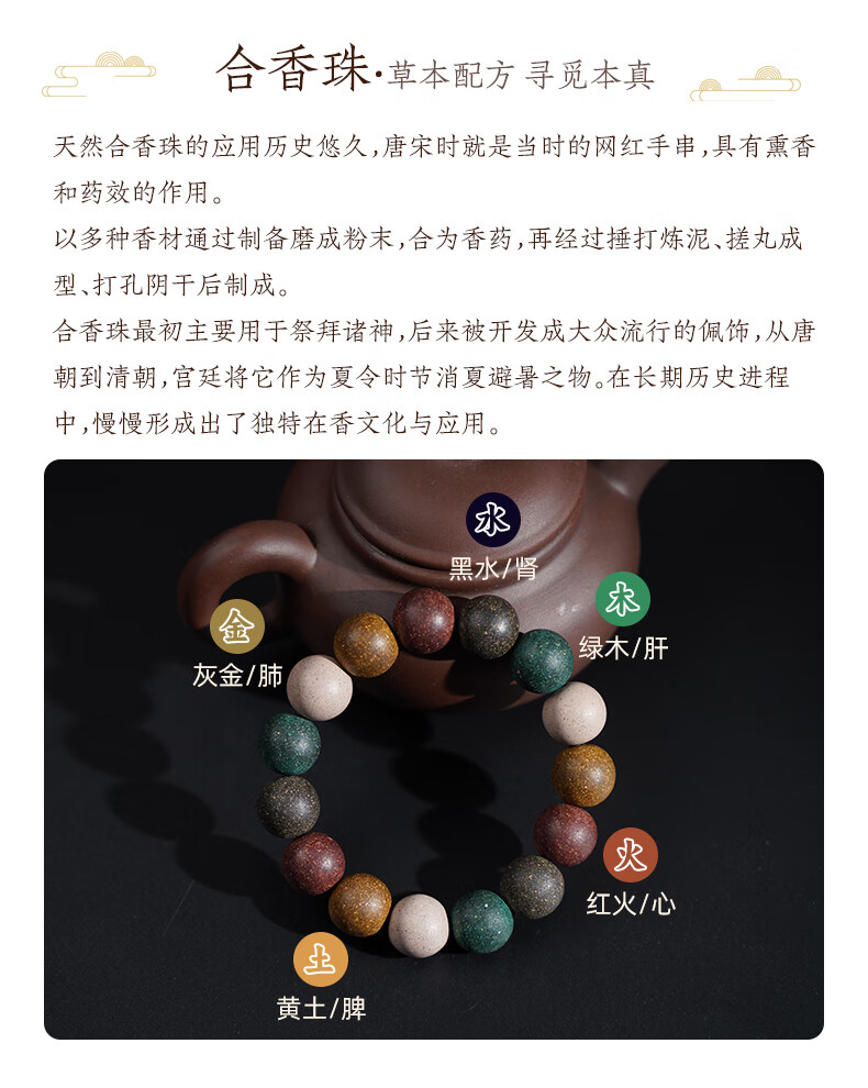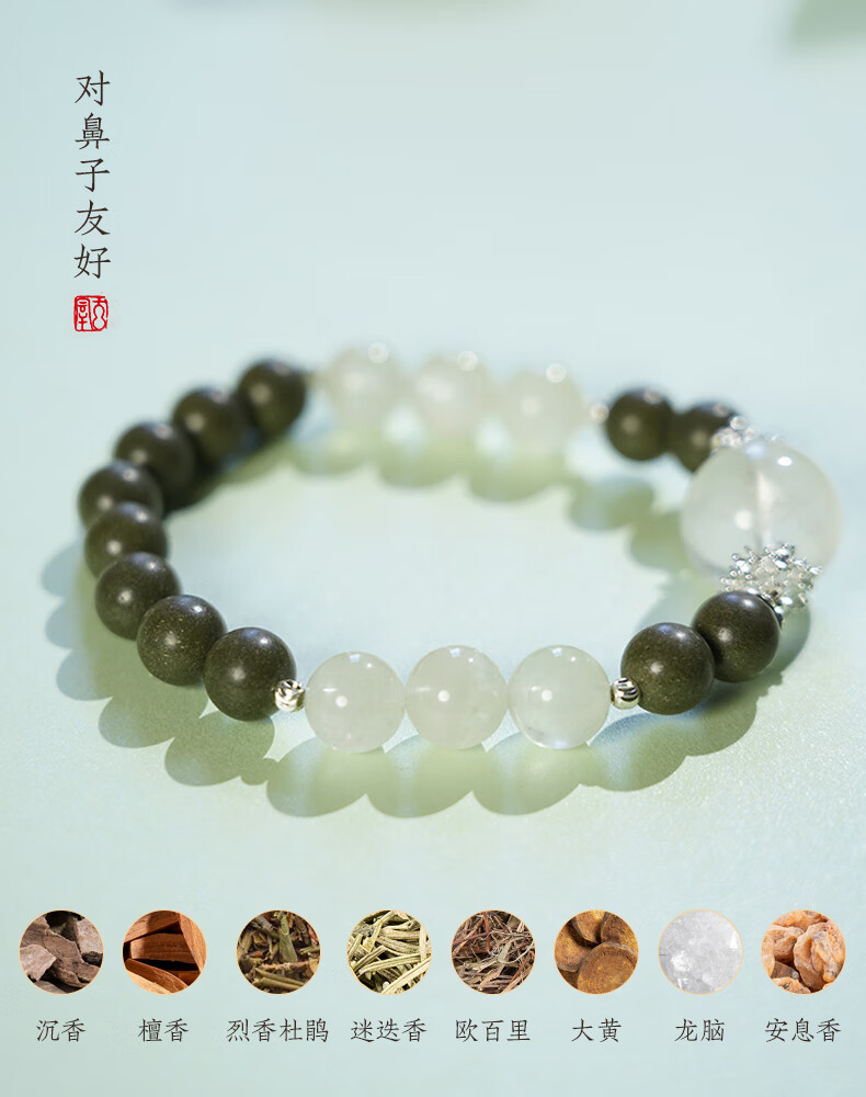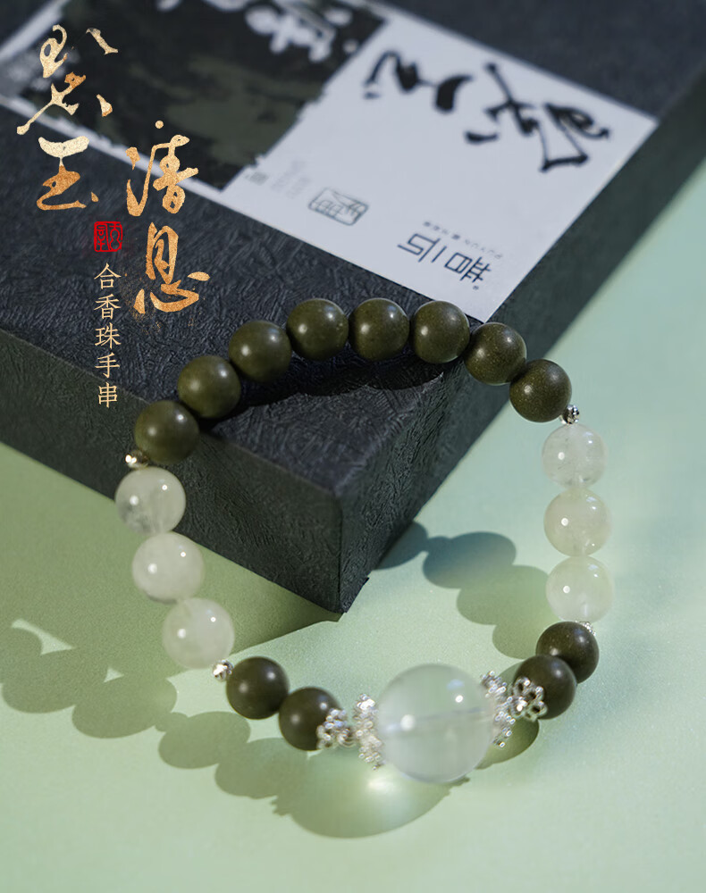 普云五行合香珠女生非遗手工设计DIY手串睡眠香珠檀香财神庙手持项链 合香珠DIY手串【碧玉·清息】