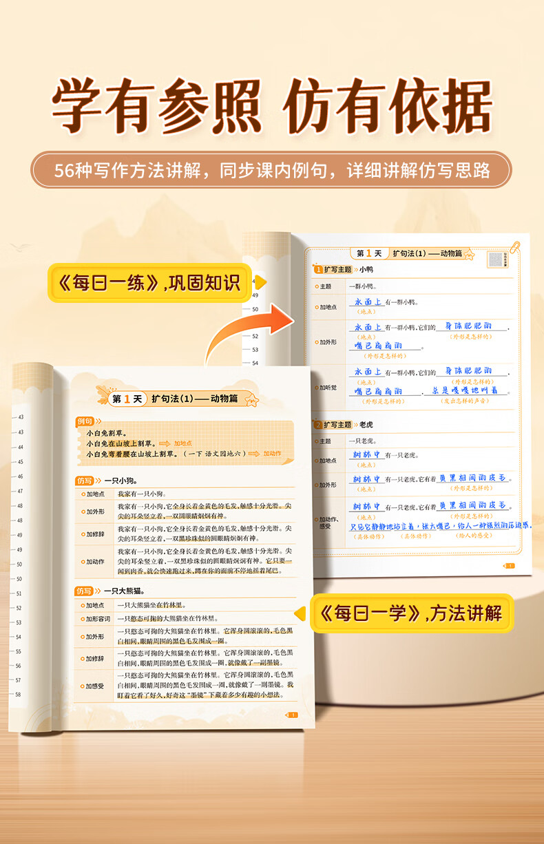 易蓓小学语文作文仿写小练笔每日一练作文好词好句优美句子素材积累三四五六年级作文天天练写作技巧书 【作文仿写】每日一练+一学 小学通用