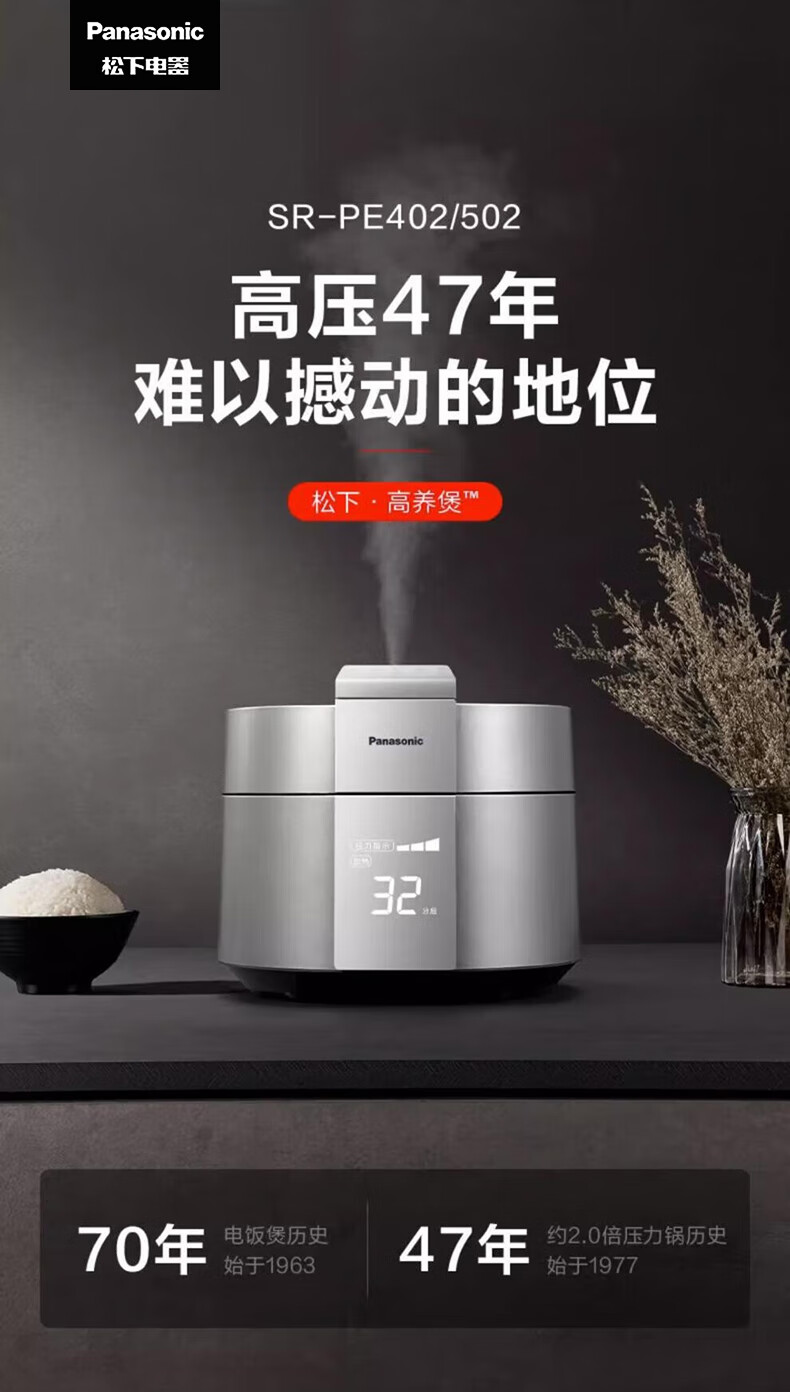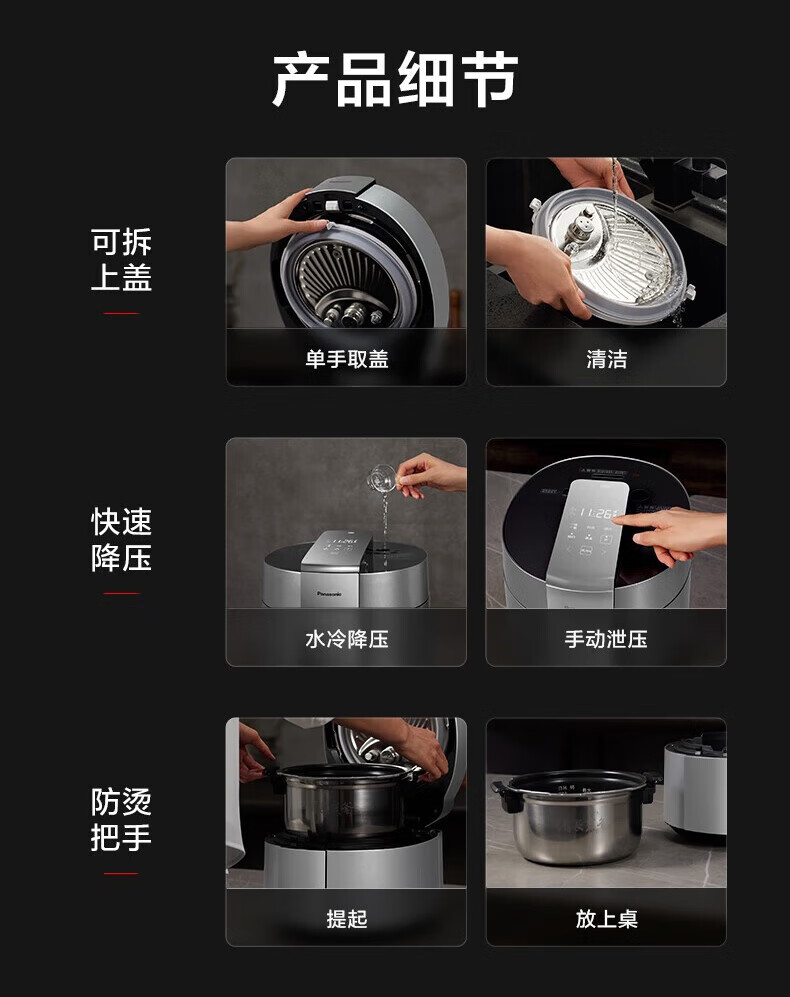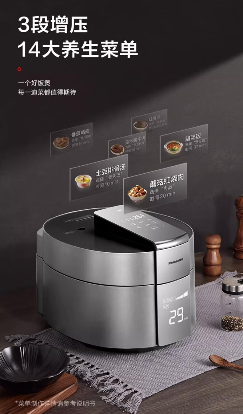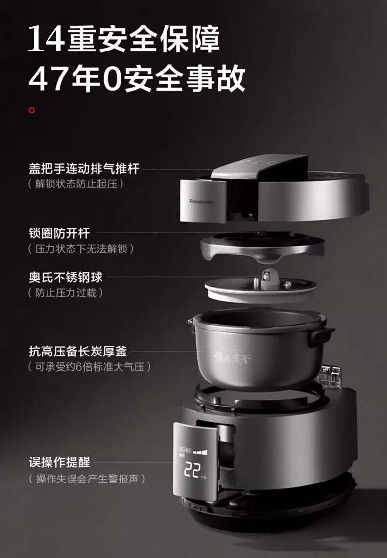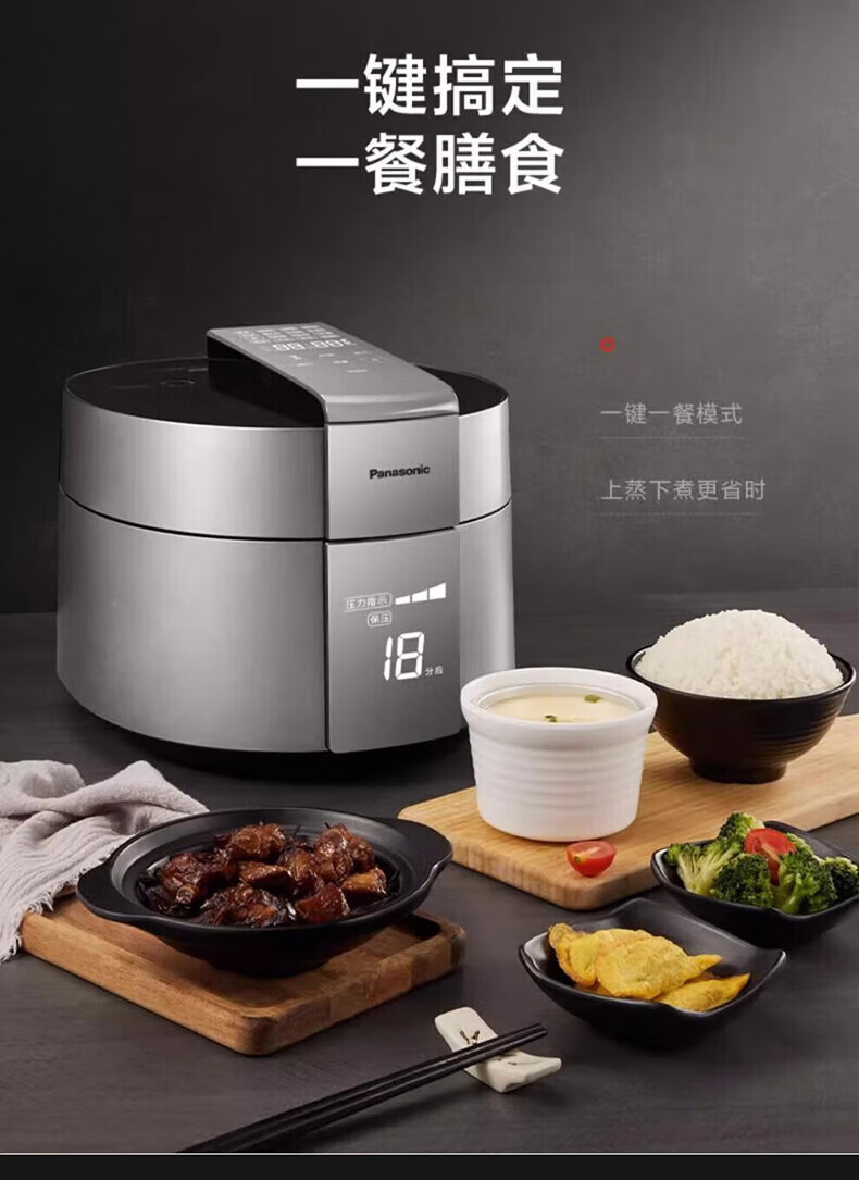 松下(Panasonic)【国家补贴】电压力锅IH高压锅家用智能高压锅电饭锅一体全自动高压力电饭煲4-6人自动排气大容量 银色|IH加热【 5L 】PE502