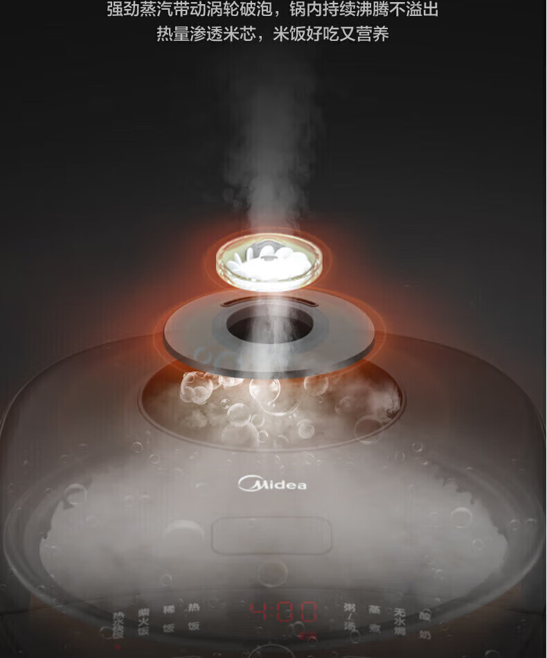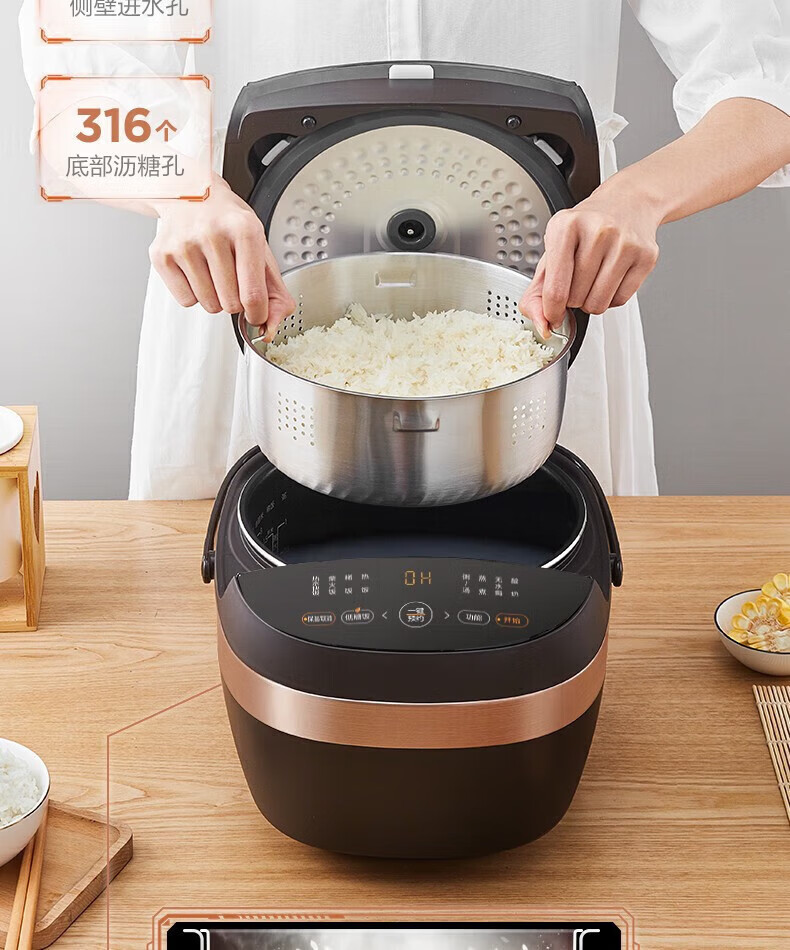 美的低糖电饭煲米汤分离沥米饭电饭锅3-4-5-6-8个人 多功能柴火饭煮饭锅微压 百孔沥糖降38%还原糖 4L