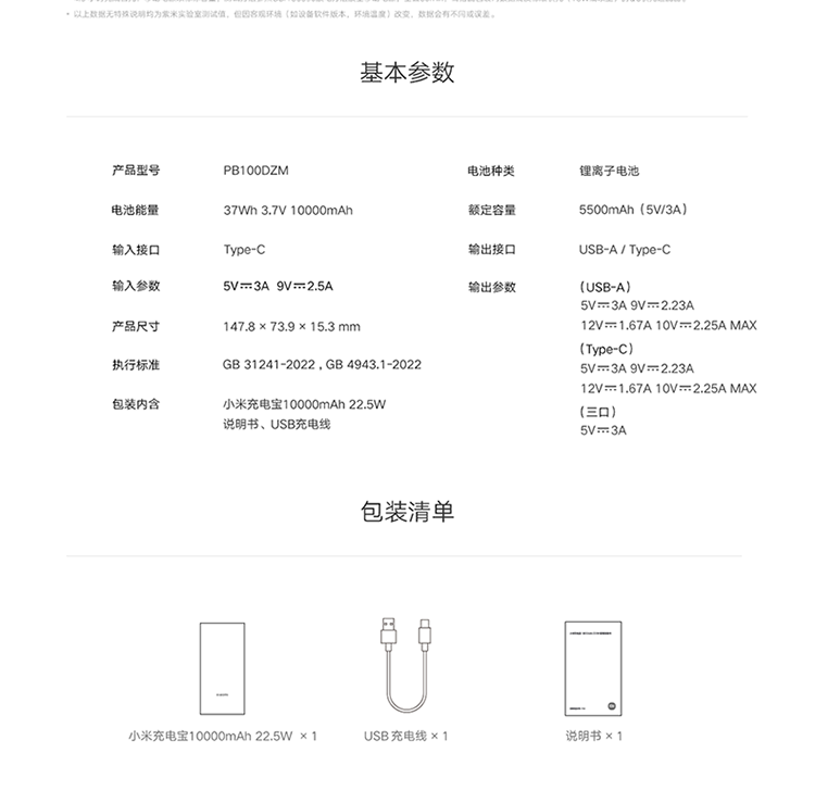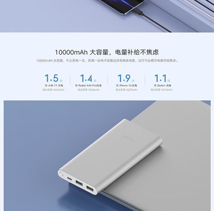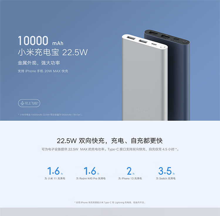 小米【3C认证】充电宝10000 22.5W 移动电源 苹果PD20W充电 适用安卓及iPhone 黑色可上飞机/火车