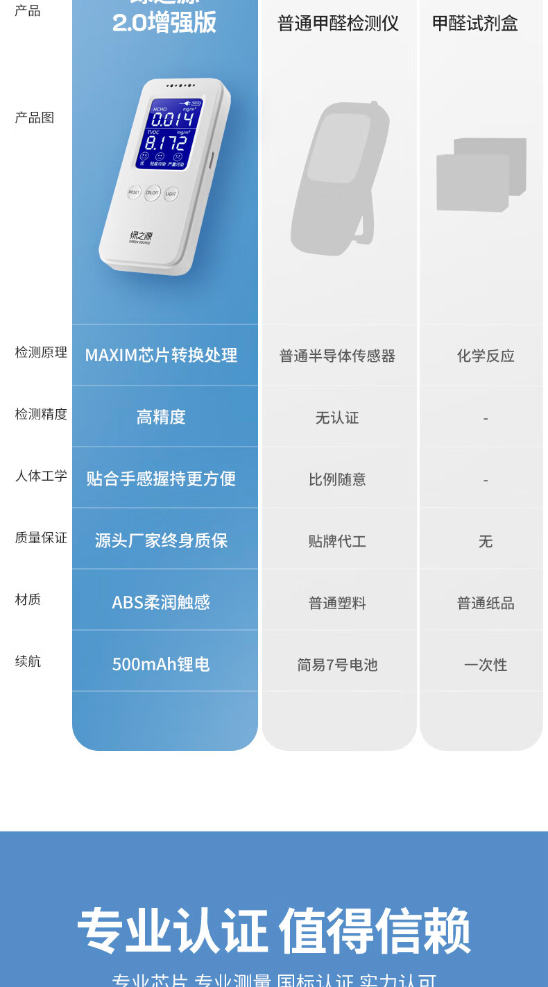 绿之源甲醛检测仪2.0增强版室内空气质量检测仪测甲醛仪器家用测试仪