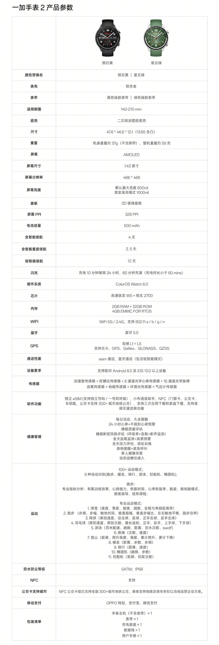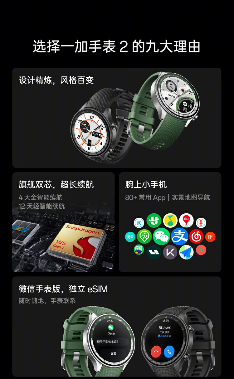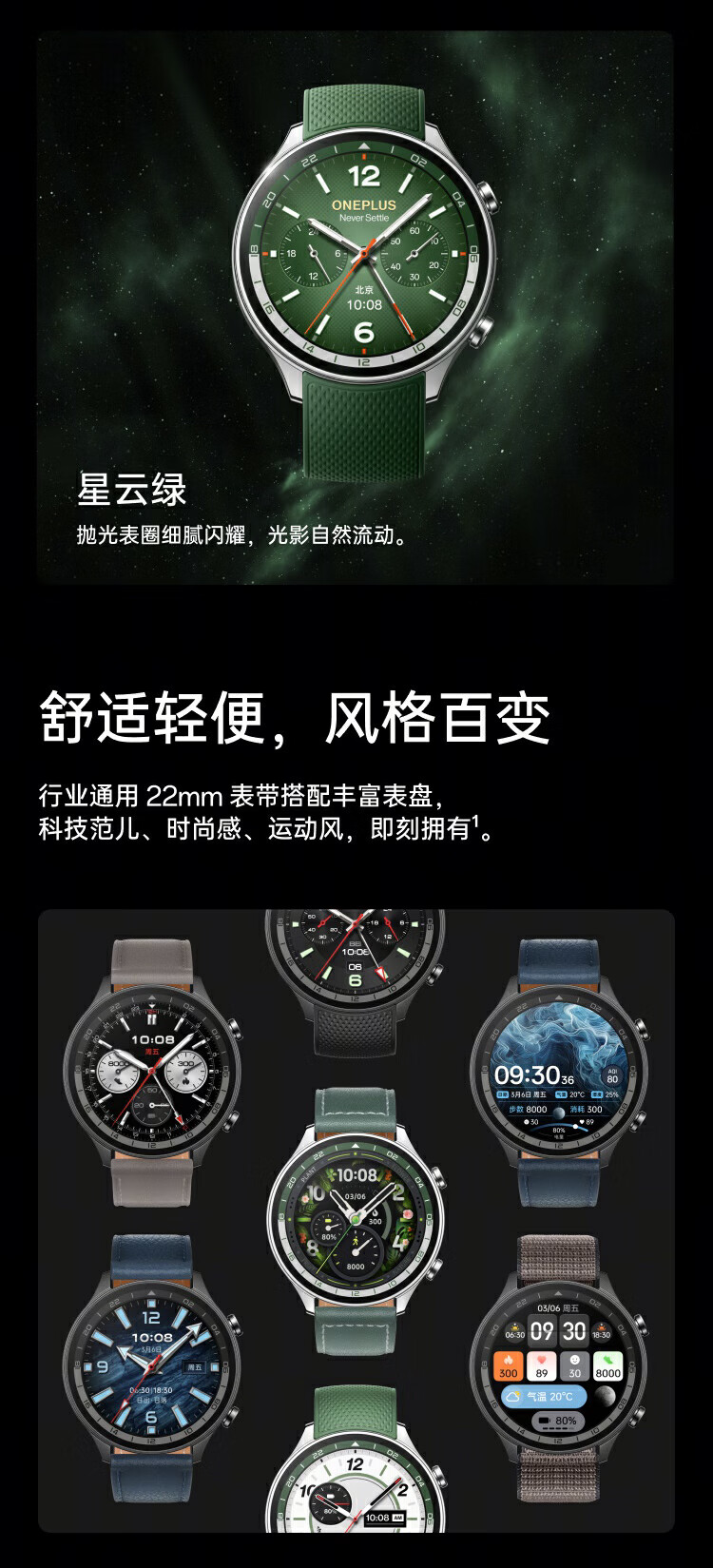 一加手表 2 星云绿【政府补贴10%】智能健康手表男女运动手表eSIM电话手表微信手表版一加手表京东自营