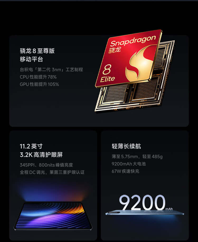 小米(MI) 小米平板8 Pro 11.2英寸 3.2K 超清屏 骁龙8 至尊 澎湃OS3 8+128G 黑色