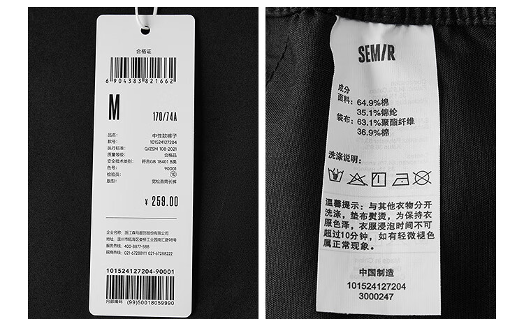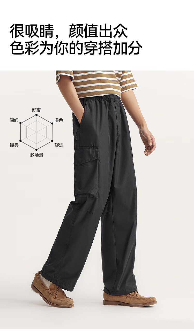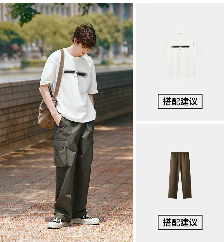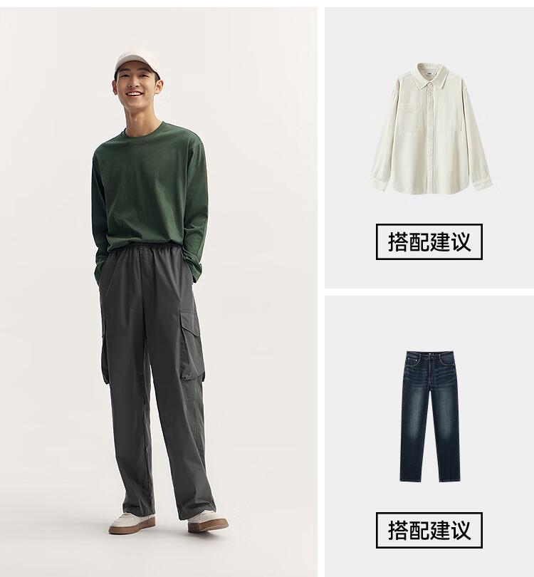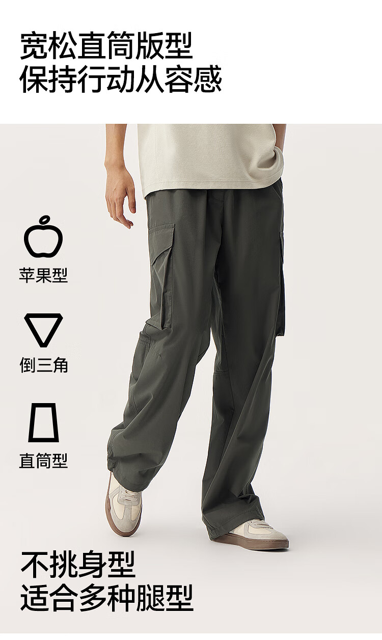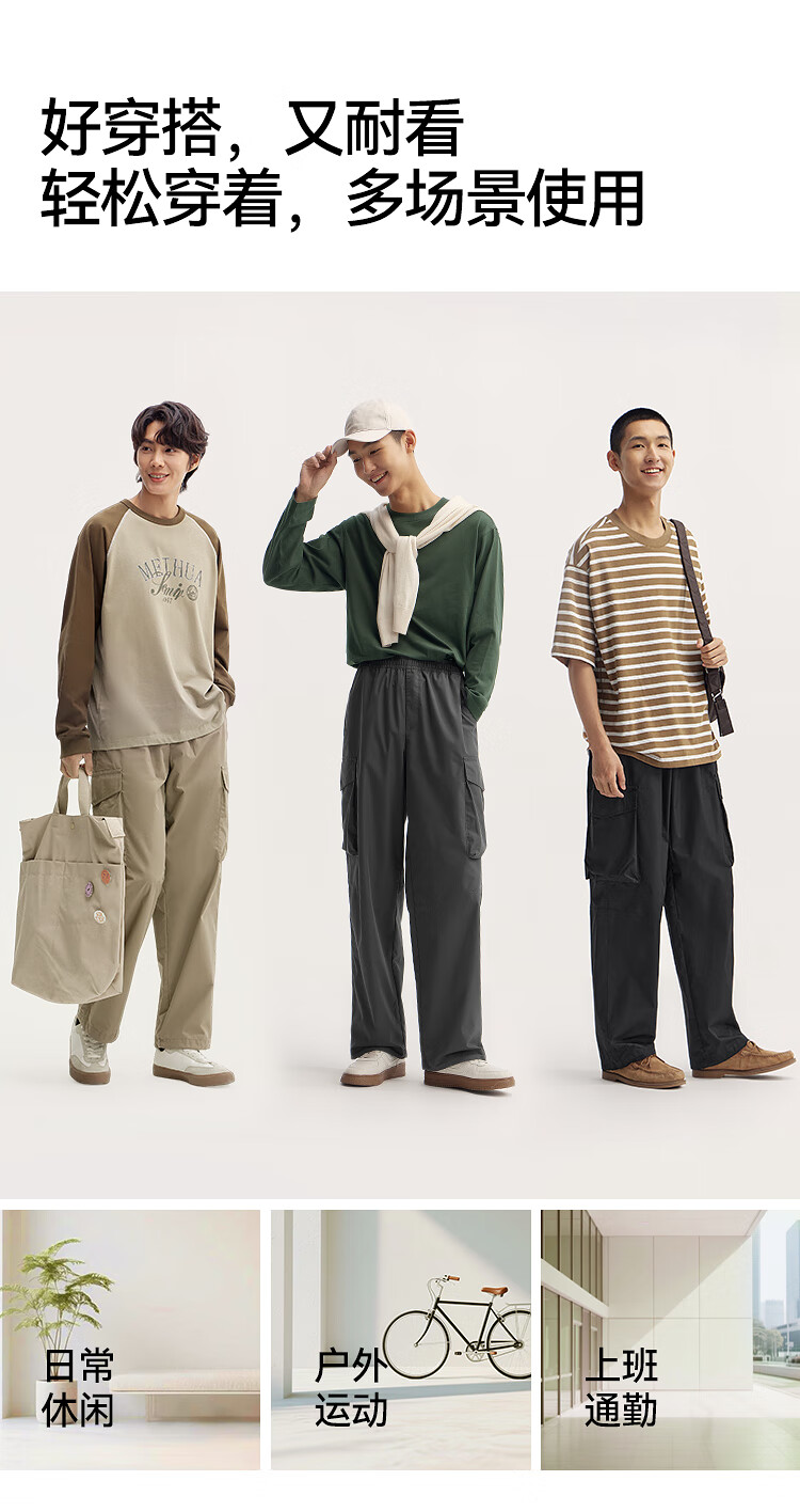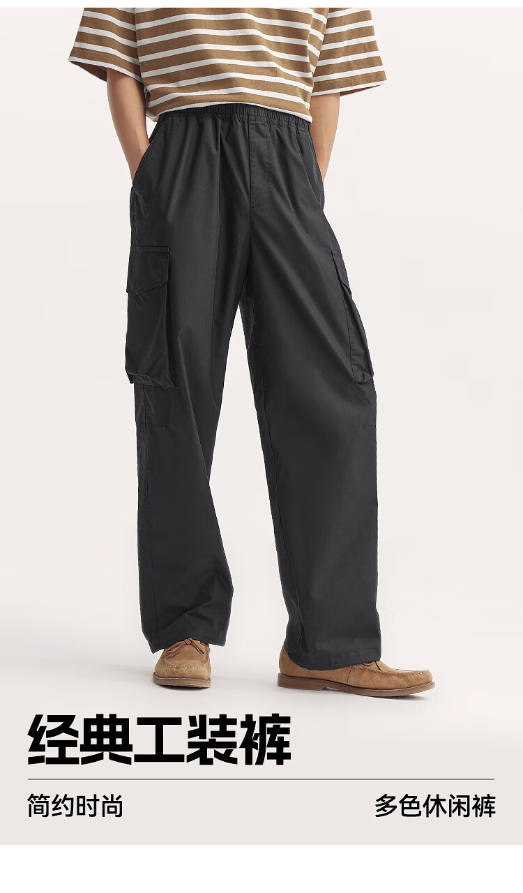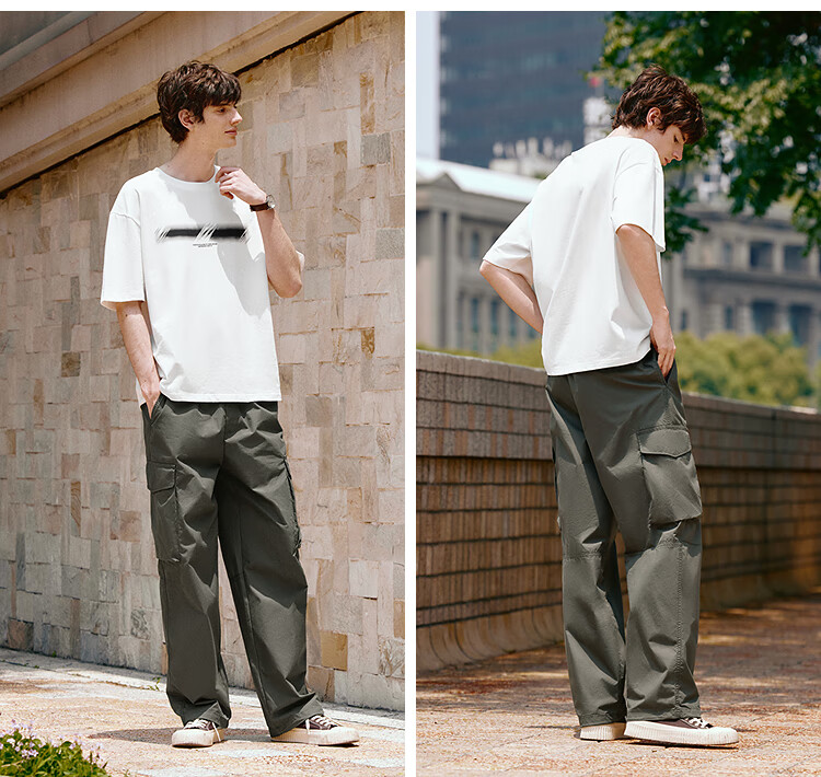 森马休闲裤男山系宽松直筒裤大口袋情侣款工装裤秋长裤101524127204