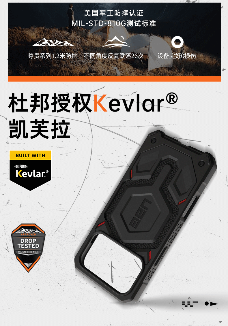 UAG磁吸装甲壳【新品】适用苹果17promax手机壳户外商务杜邦授权Kevlar®凯夫拉iPhone17系列保护壳 【硬核防摔】磁吸凯夫拉极夜黑 iPhone17 Pro Max手机壳