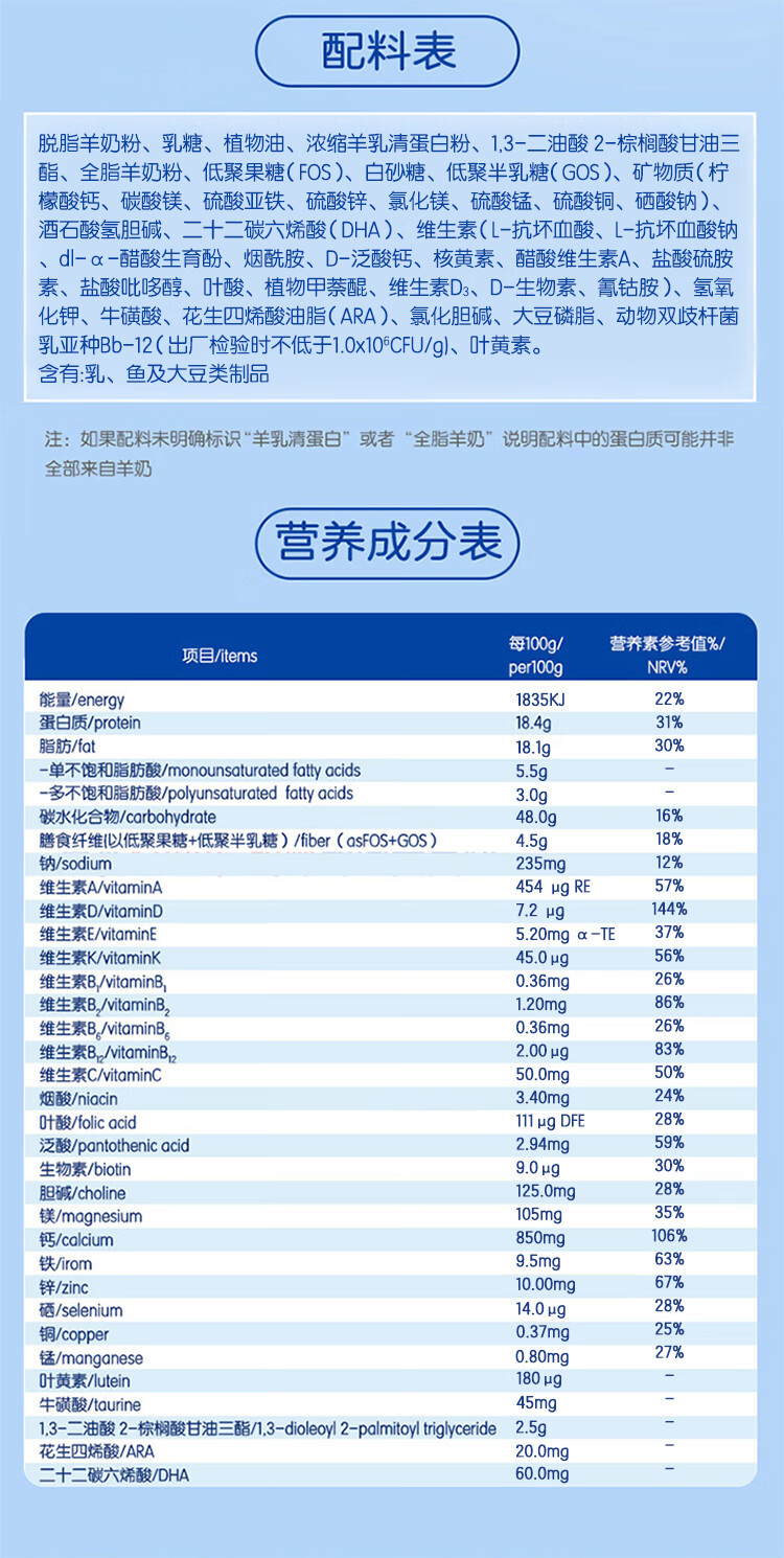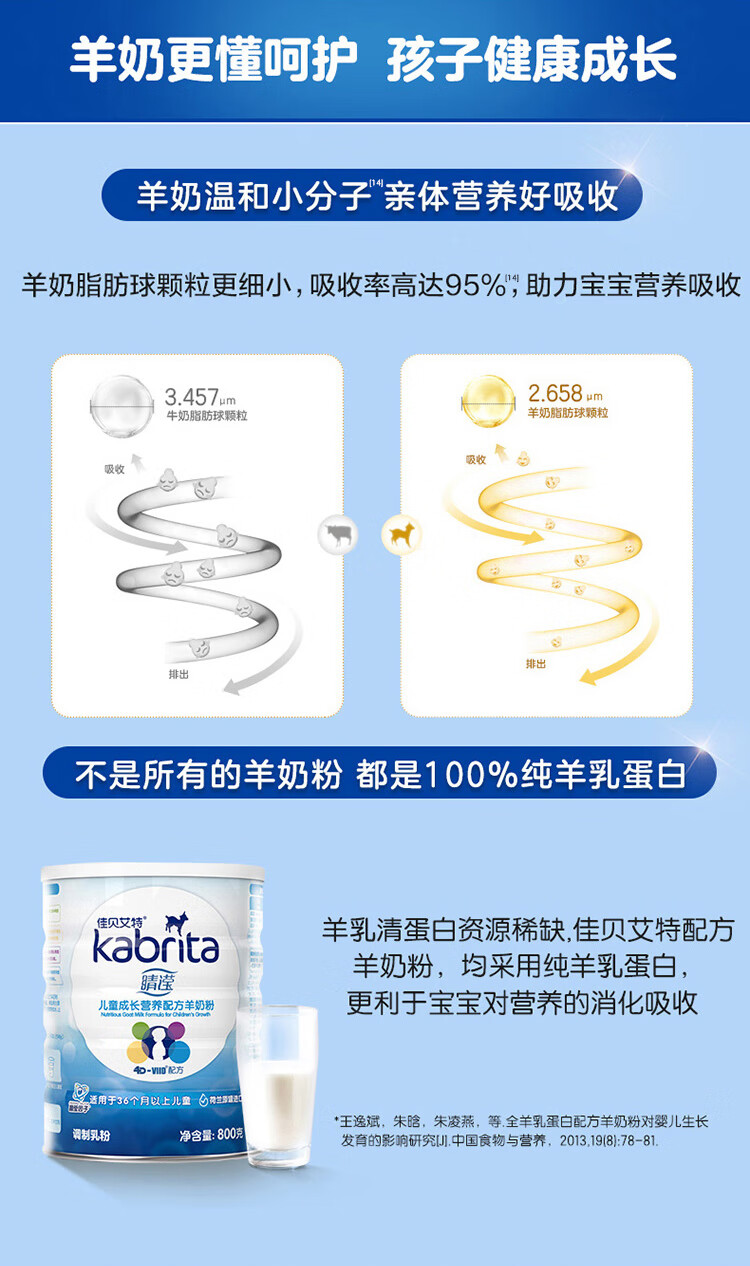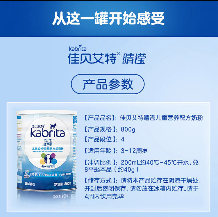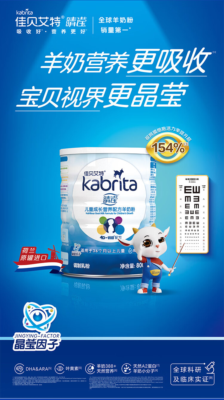 佳贝艾特睛滢学生儿童成长配方羊奶粉4段800克(3岁以上)荷兰进口 【咨询砍价】睛滢护眼羊奶粉800g*1罐