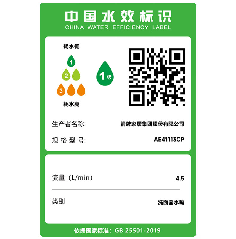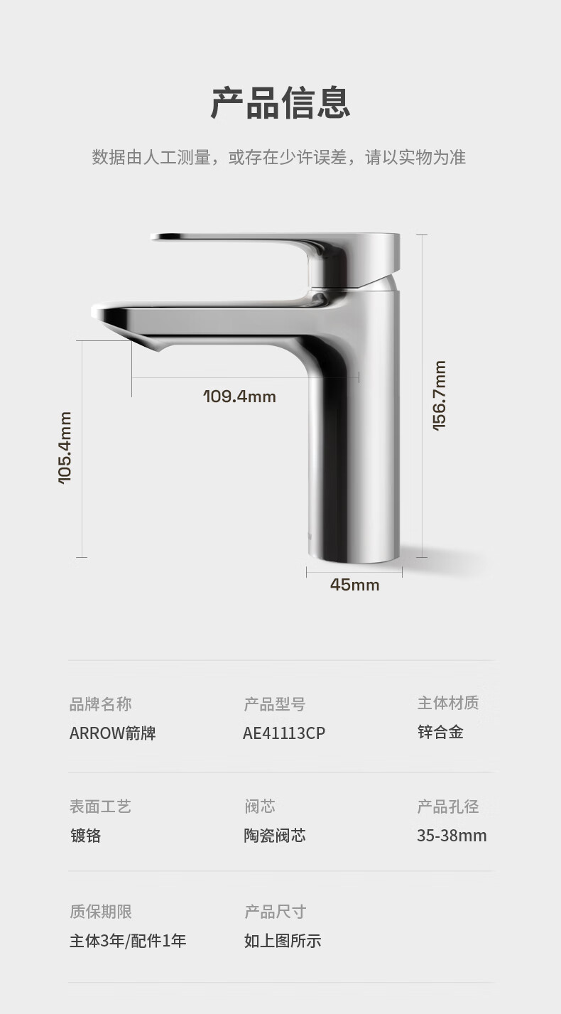 箭牌(ARROW)洗脸台盆冷暖龙头面盆 洗脸盆浴室柜冷热水龙头AE41113CP