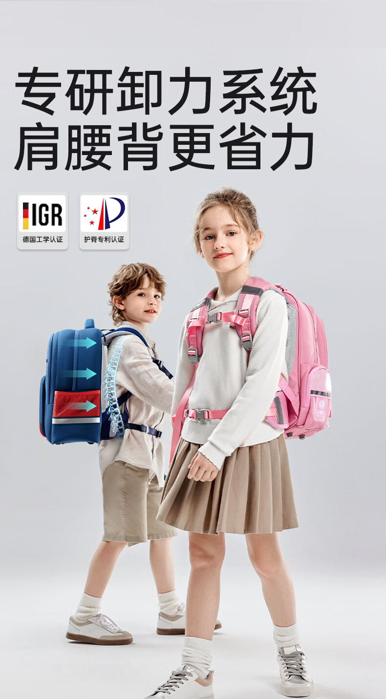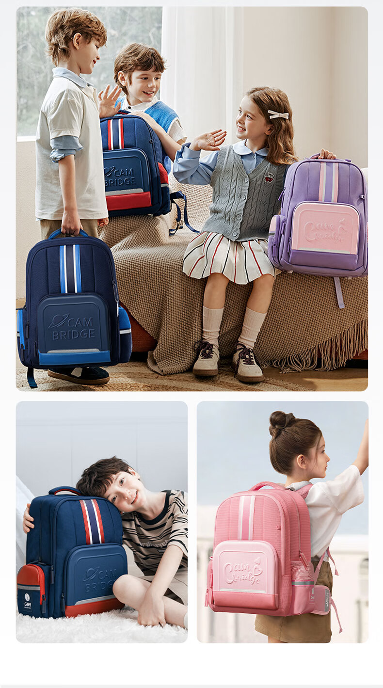 剑桥树儿童书包小学生男孩1-6年级护脊减压女童大容量轻便背包 浅紫粉