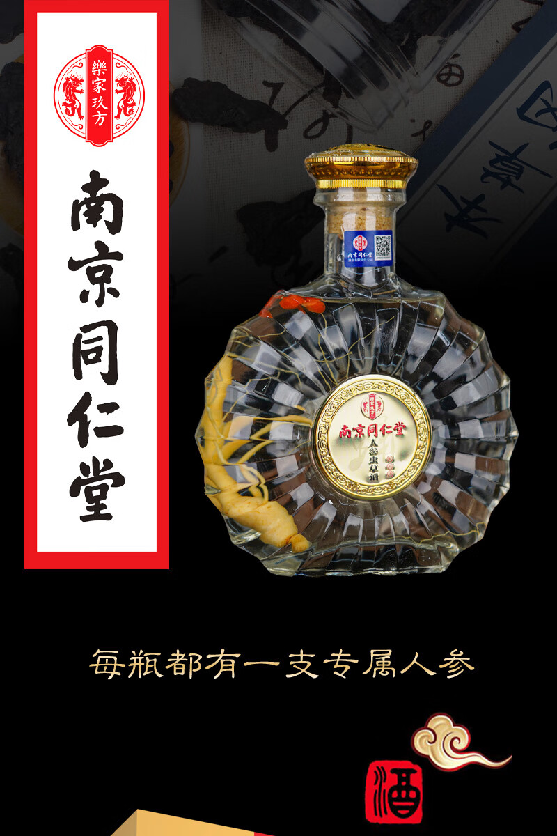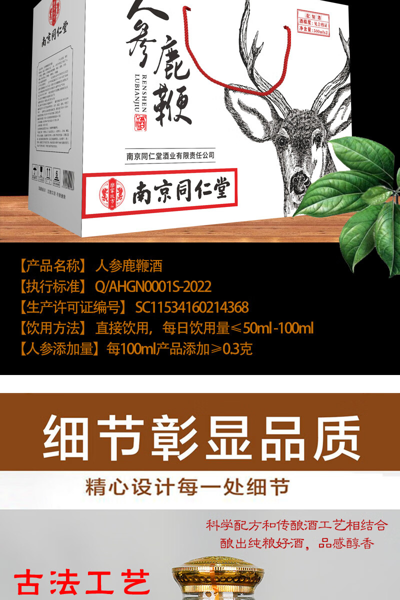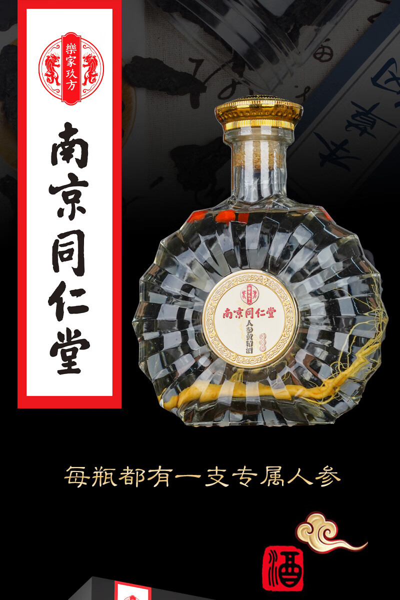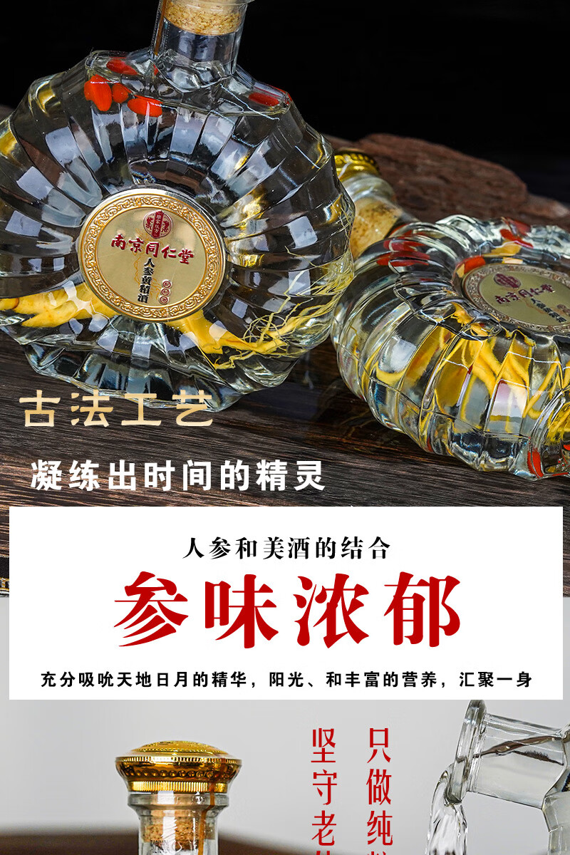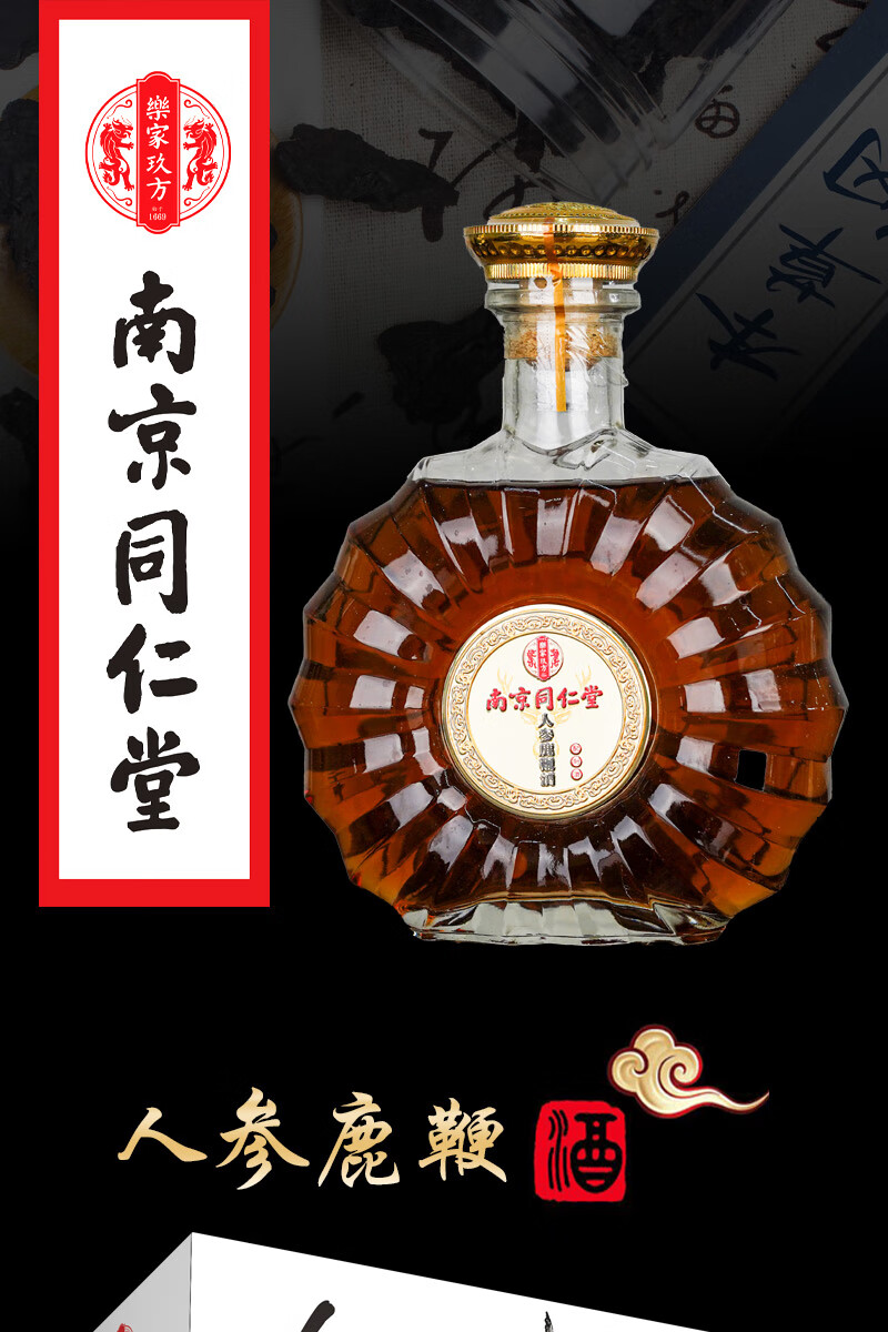 乐家玖方 南京同仁堂 人参酒 优级浓香 500mL×2瓶 礼盒装 送礼送父母长辈 52度 500mL 2瓶 鹿鞭酒1盒