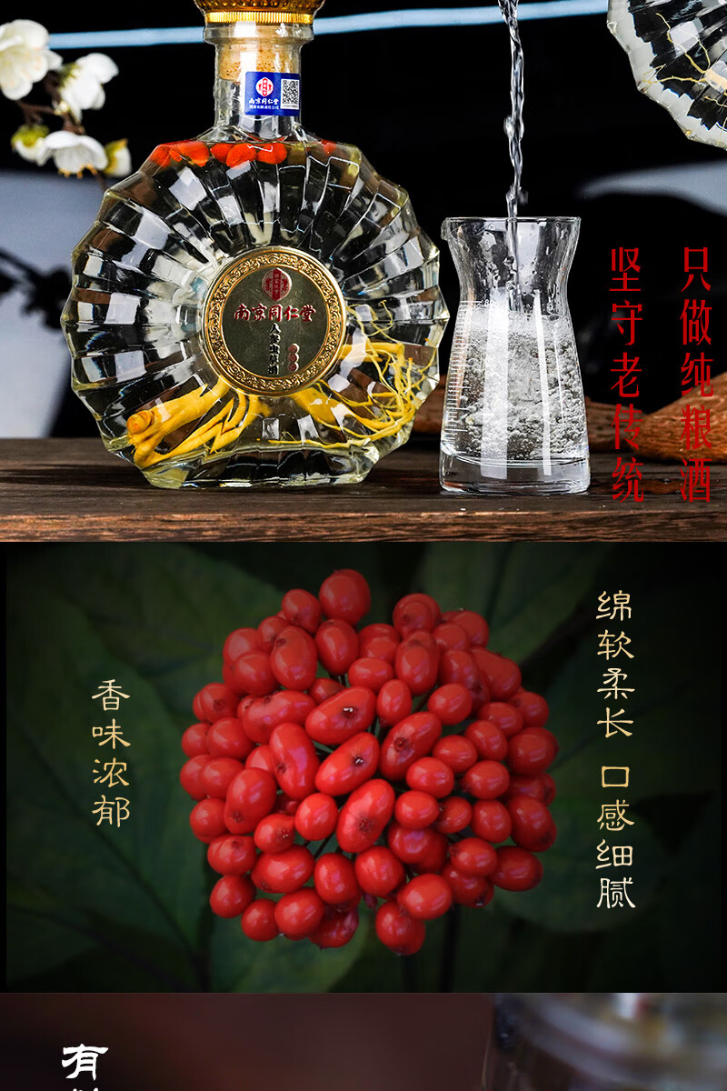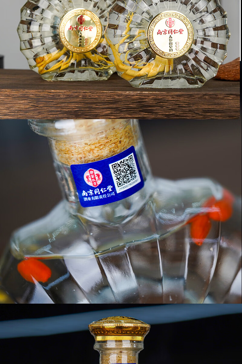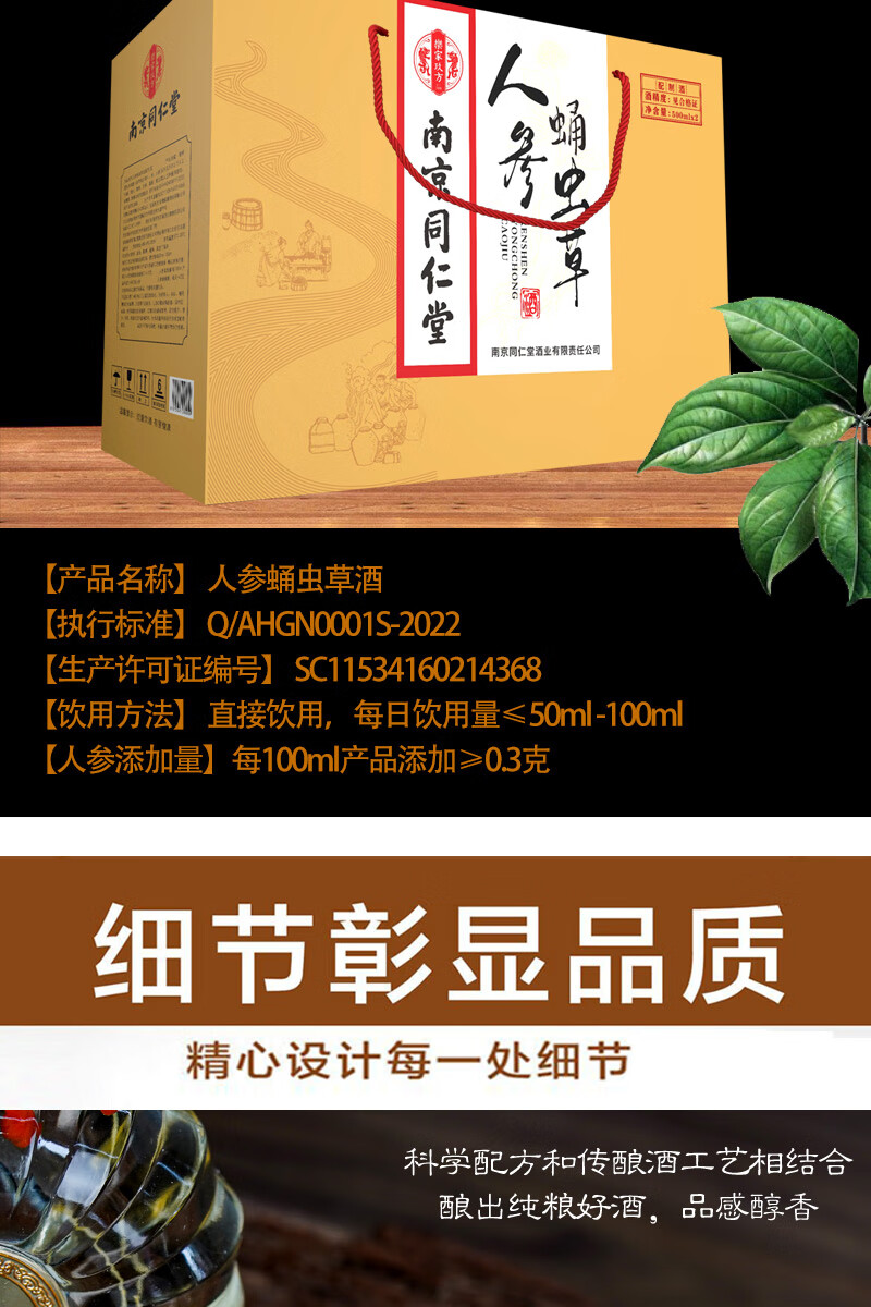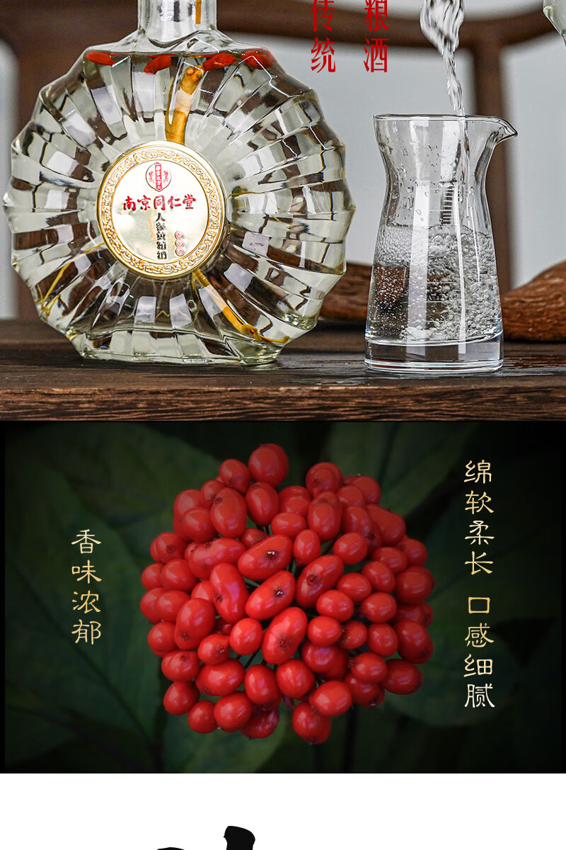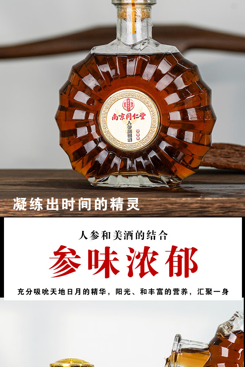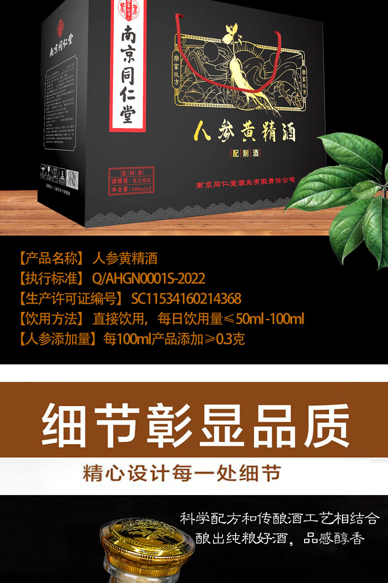 乐家玖方 南京同仁堂 人参酒 优级浓香 500mL×2瓶 礼盒装 送礼送父母长辈 52度 500mL 2瓶 鹿鞭酒1盒