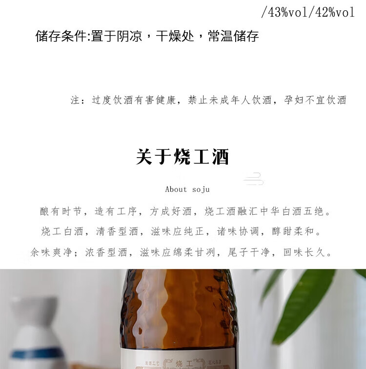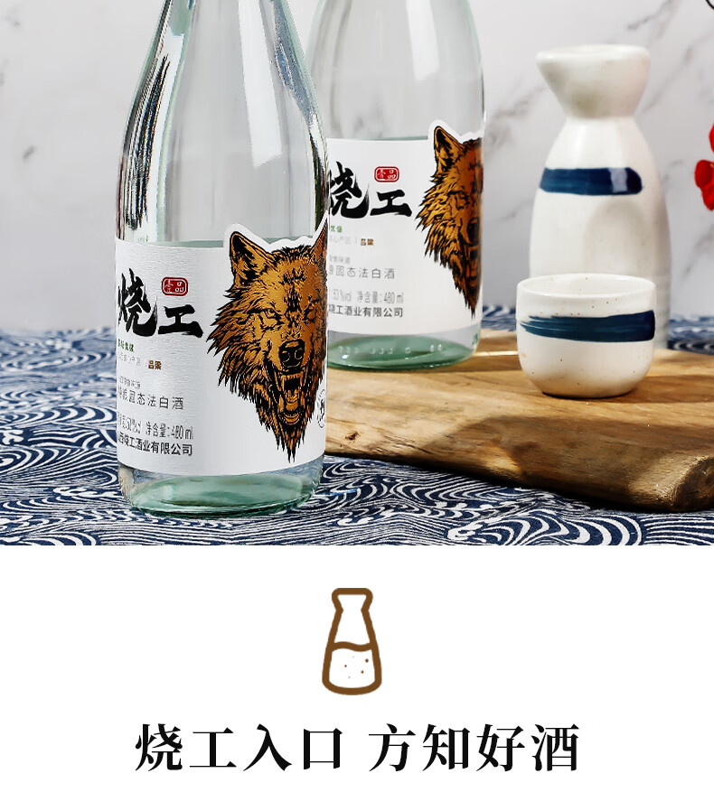 烧工清香型白酒480ml纯粮食高粱聚会送礼宴请高端商超同款官方正品 42%vol 480mL 2瓶 480ml清香型酒