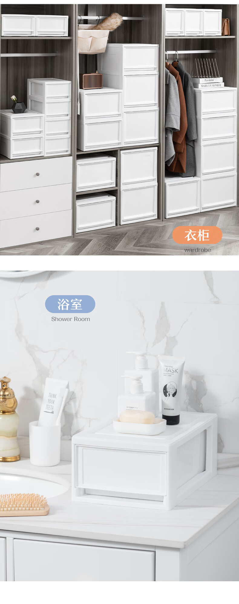 爱丽思(IRIS)收纳柜安全无味宝宝衣柜加大抽屉式收纳箱可叠加密闭床头柜爱丽丝