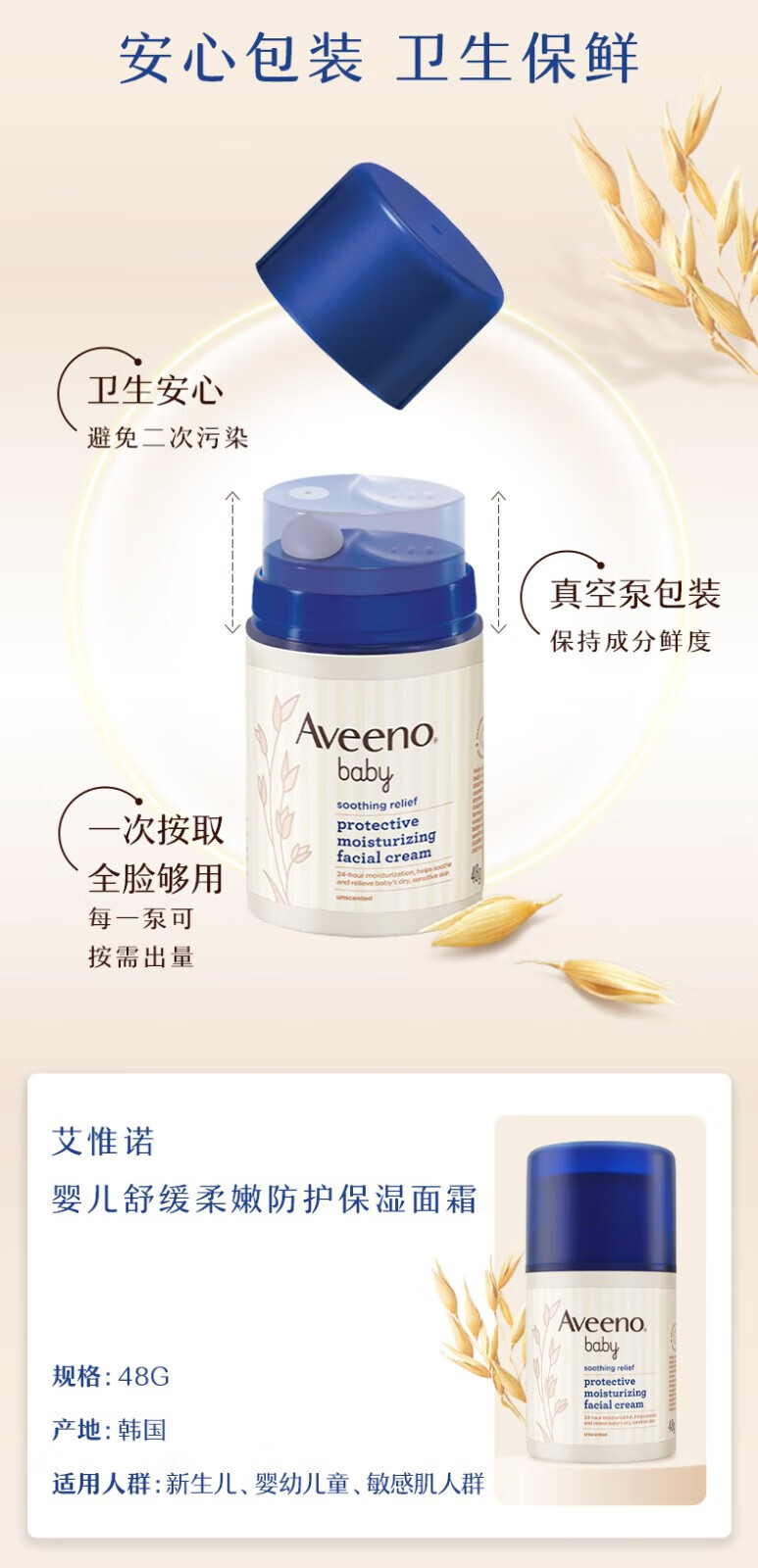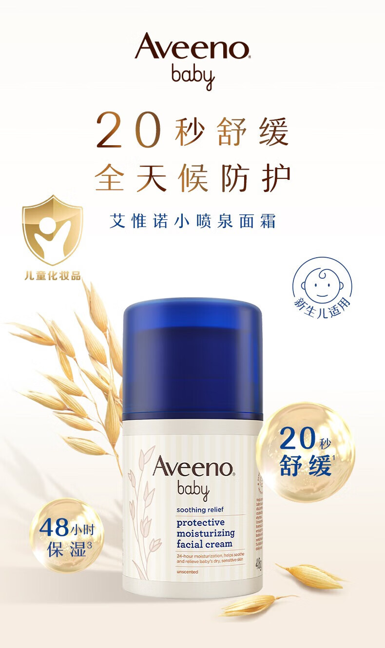 艾惟诺(Aveeno)【韩国原装进口】婴儿小喷泉 婴童护肤滋润保湿燕麦面霜48g