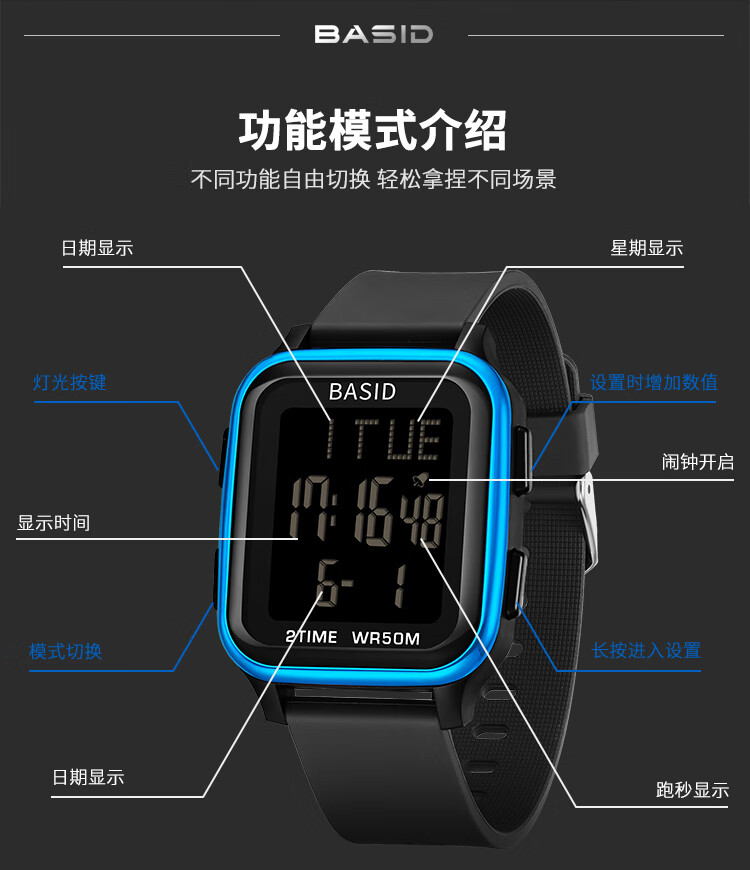 佰时顿青少年电子手表男学生女运动专用初中生高中生开学季礼物考试生日