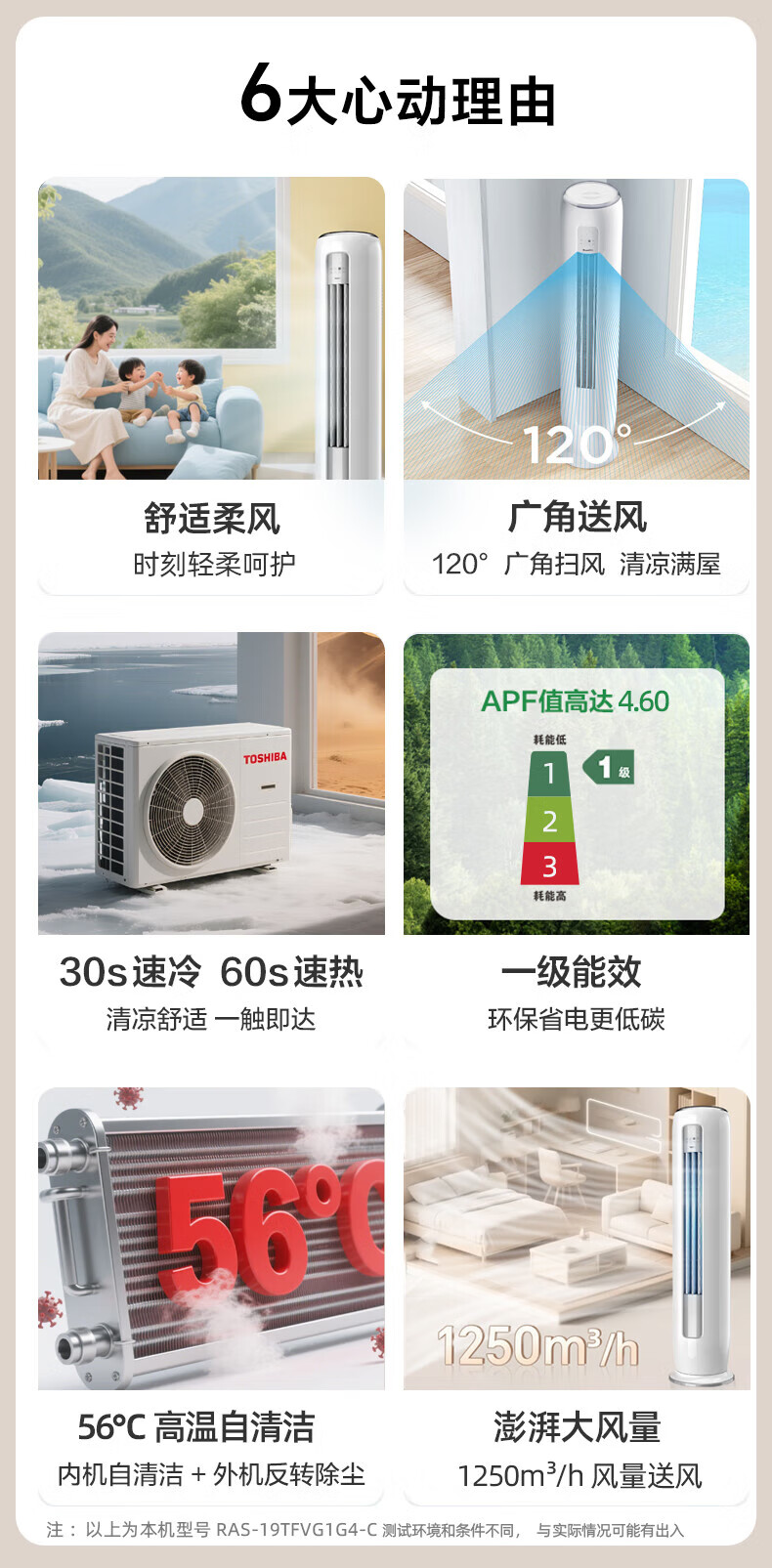 东芝(TOSHIBA)空调 大2匹 新1级能效 省电变频冷暖客厅 立式柜机超远舒适风RAS-19TFVG1G4-C RAS-19TBVG1G4-C