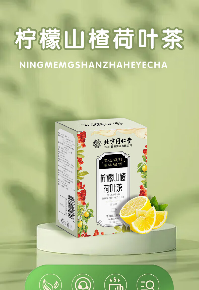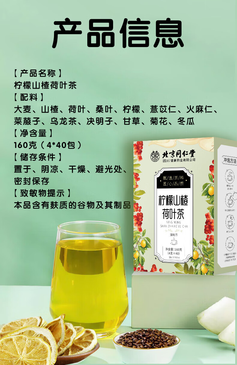 北京同仁堂柠檬山楂荷叶茶独立包装甘草菊花薏苡仁便携冲泡喝茶包养生茶 【1盒体验装】160g(4g×40袋)/盒