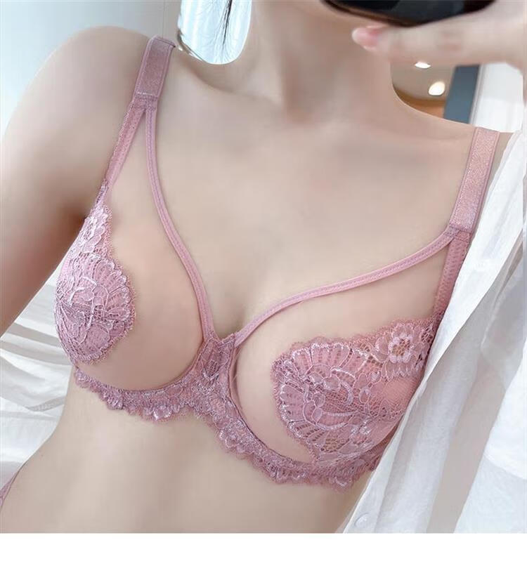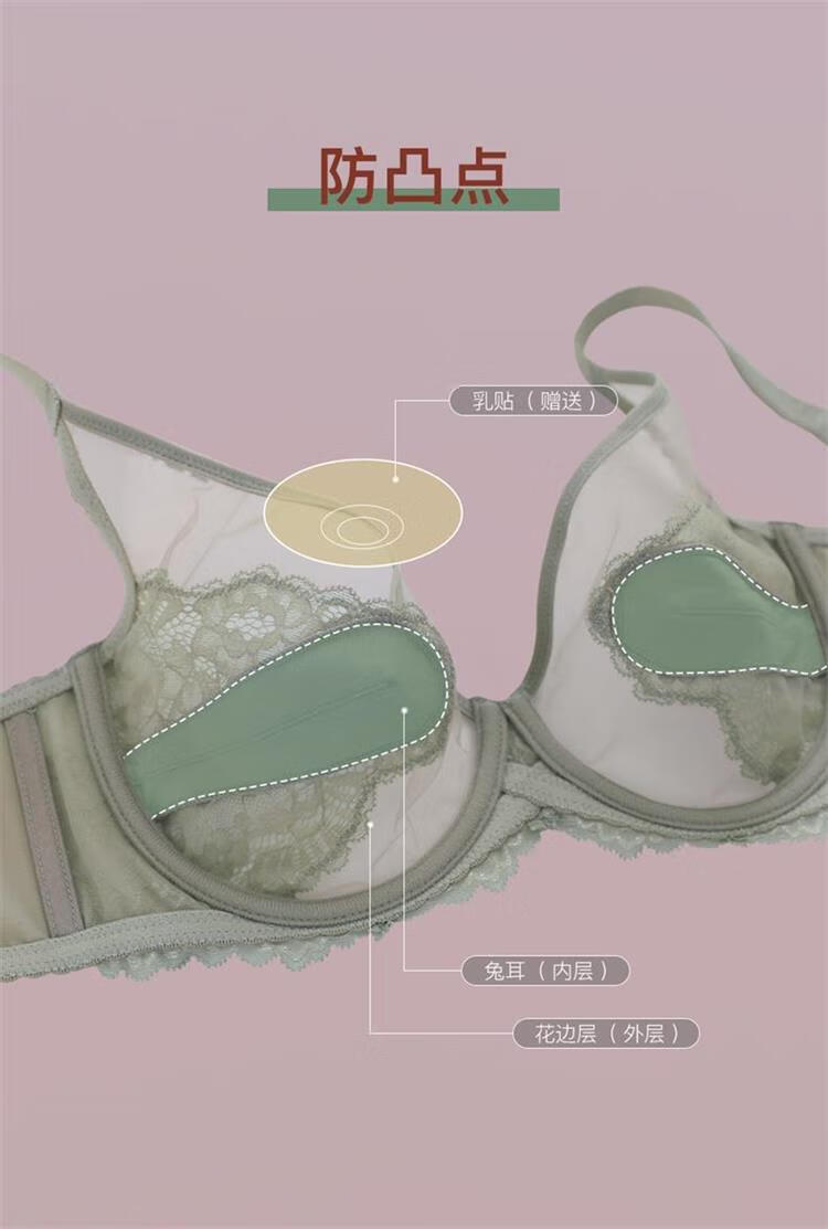 婷可彩性感蕾丝内衣女薄款大胸显小聚拢透气调整收副乳防下垂大码文胸罩 黑色(单件) 36/80码(BC通杯厚约0.2CM)