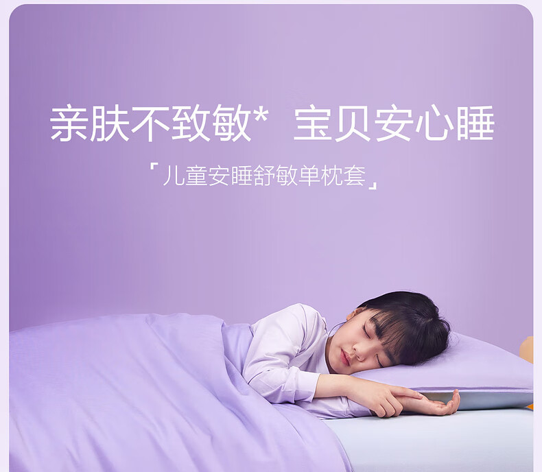 水星家纺枕套 儿童安睡舒敏枕套 婴幼儿A类洁净抑菌枕套 儿童安睡舒敏枕套(杏仁黄) 单只 50cm*30cm